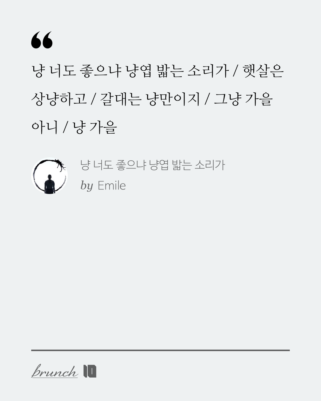 냥 너도 좋으냐 냥엽 밟는 소리가 / 햇살은 상냥하고 / 갈대는 냥만이지 / 그냥 가을 아니 / 냥 가을