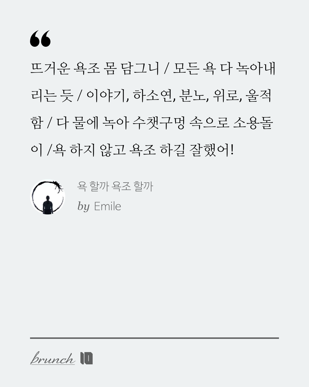 feat : 수챗구멍 X | 이야기 할까 말까 하소연 할까 말까 화 낼까 말까 위로 해달라 별로 말할까 말까 그냥 울까 말까 뜨거운 욕조 몸 담그니 / 모든 욕 다 녹아내리는 듯 / 이야기, 하소연, 분노, 위