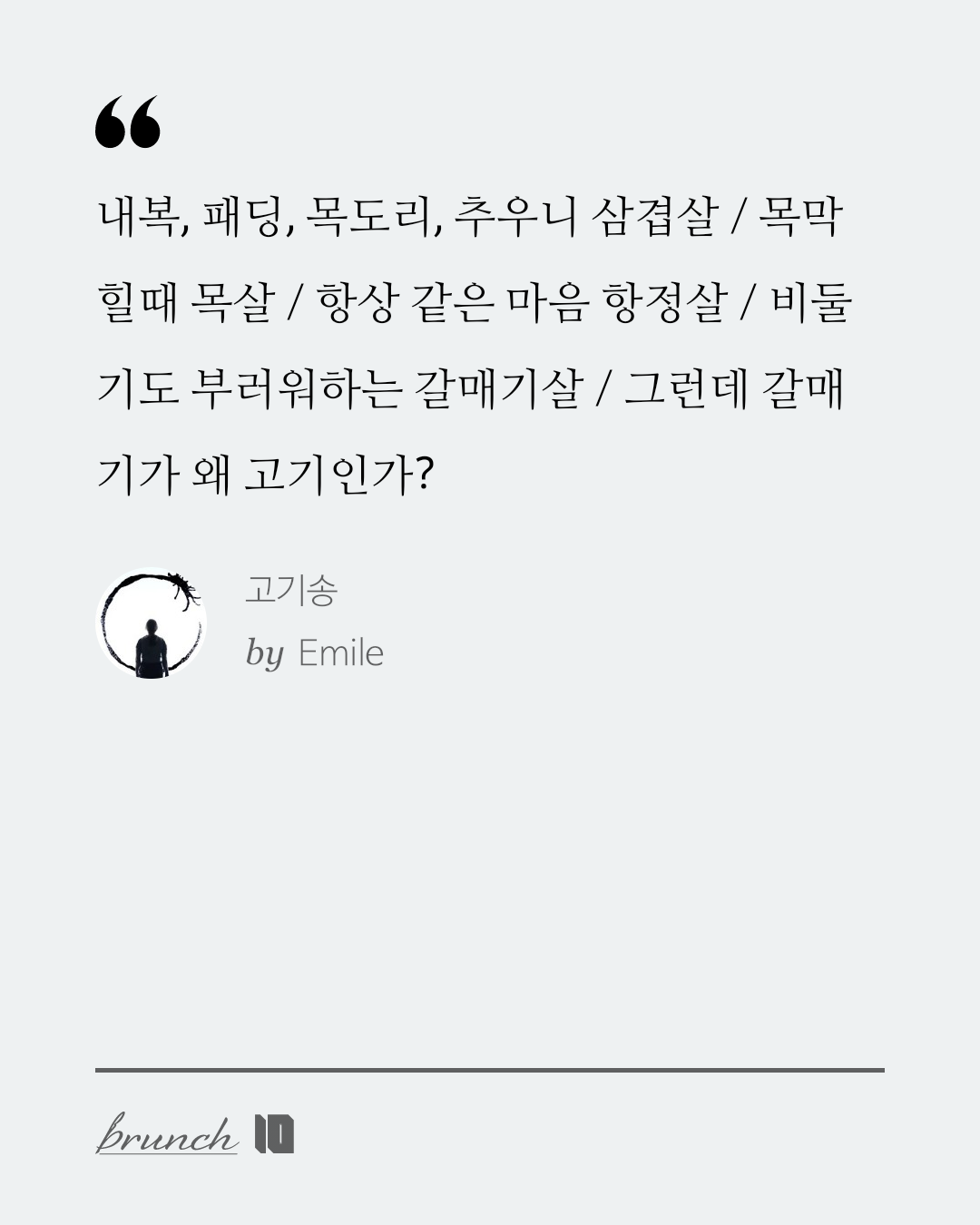 feat 왜 고기인가? | 내복, 패딩, 목도리, 추우니 삼겹살 / 목막힐때 목살 / 항상 같은 마음 항정살 / 비둘기도 부러워하는 갈매기살 / 그런데 갈매기가 왜 고기인가? 날씬한 갈비 머리묶는 곱창 제