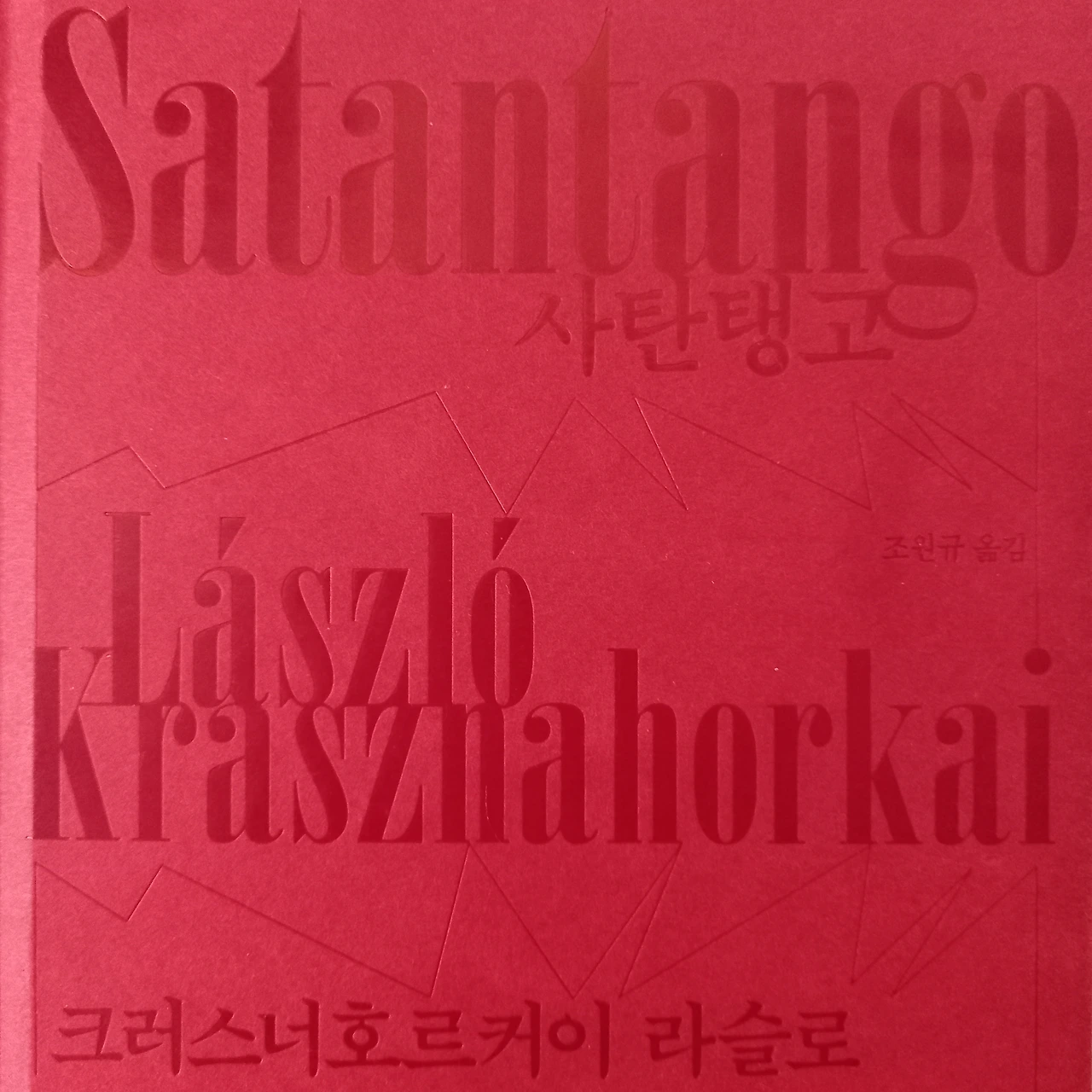 처음 들어본 이름일 뿐만 아니라 "크-러-스-너-로-르-커-이" 라고 발음하기가 무척 어려웠기 때문입니다. 그러나 어려운 이름은 좀 호기심이 가는 대목이기도 했지요. 더군다나 그의 대표작 '사탄탱고'는 마치 '악마와의 춤을' 같은 느낌이 연상되어 황홀경을 떠오르게 했습니다. 적어도 책의 뚜껑을 처음 볼 때까지는 그랬습니다. 표지가 온통 빨간색으로 매혹적이었거든요. 거기에는 제목과 그의 어려운 이름 "크-러-스-너-로-르-커-이"가 마치 고대 사탄의 인장처럼 찍혀있었습니다. 그의 이름을 놀린 것을 사과하는 차원에서라도 이 책을 읽어 보기로 합니다. 그는 과연 놀림을 받지 않고 노벨문학상을 수상할 만한 사탄의 글빨을 가지고 있는 것일까요?