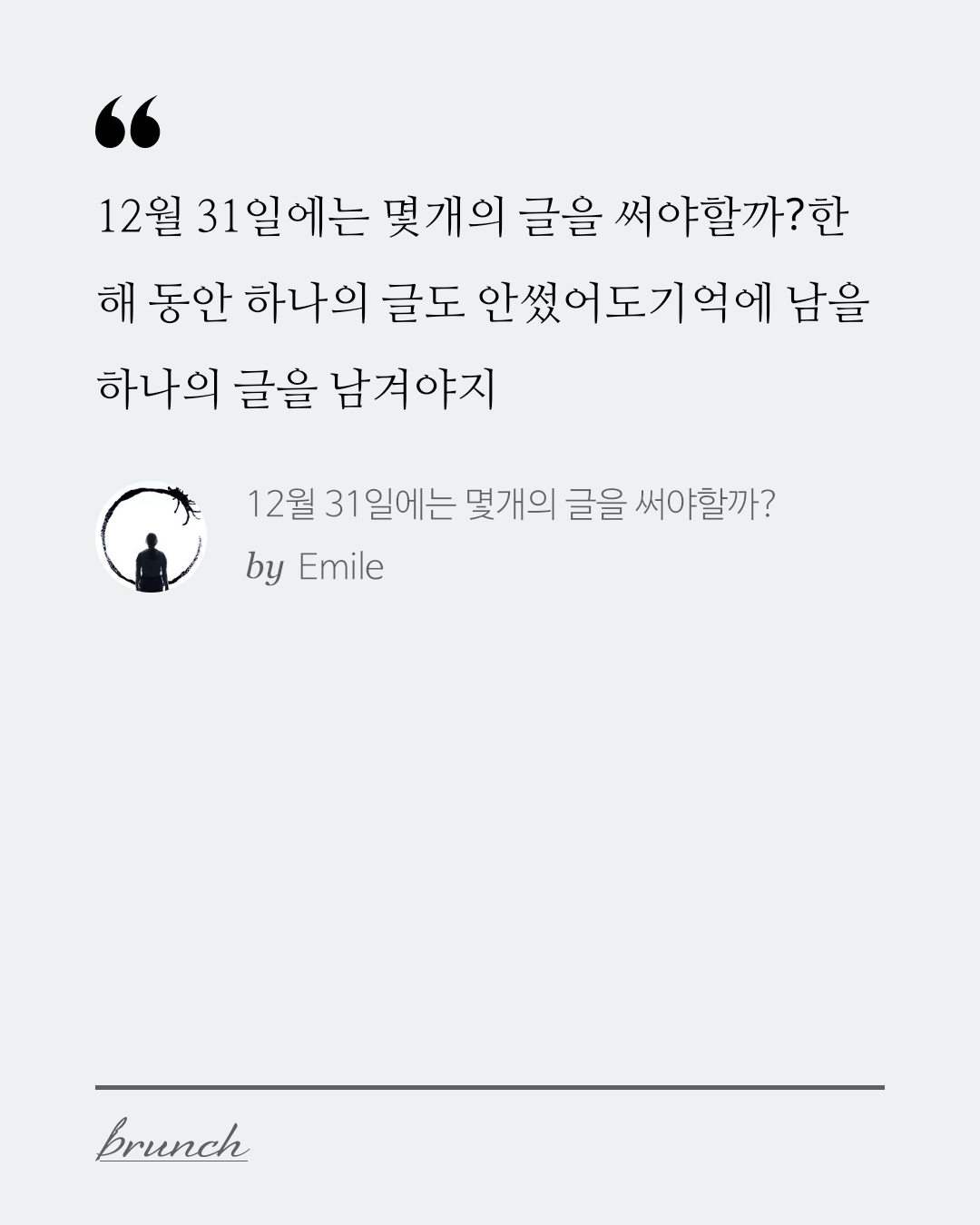 feat 2024년 | 12월 31일에는 몇개의 글을 써야할까? 한해 동안 하나의 글도 안썼어도 기억에 남을 하나의 글을 남겨야지 한해 동안 쉬지 않고 떠들었으니 마지막 하루 글도 숴도 좋겠지 몇개고 언제
