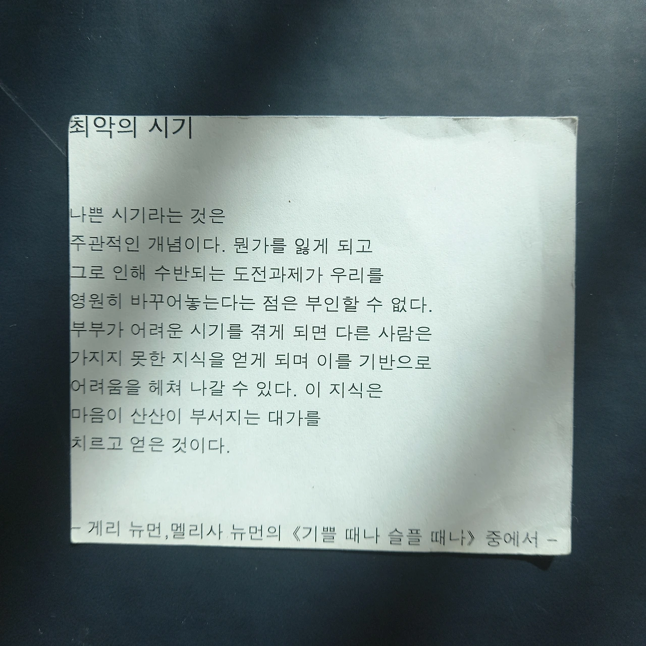 돌이켜 보니 그때의 '힘듦'은 전혀 기억나지도 않고 전혀 '최악'의 시기도 아니었습니다.