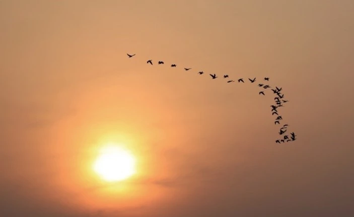 무리지어 남녘 향해 날아가는 새들은