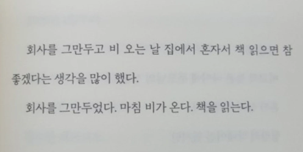 "비 오는 날 집에서 혼자서 책 읽으면 참 좋겠다"는 생각을 많이 했던 저자는 이제 그것을 합니다. 이 문장에 놀고 있는 저자의 자유와 기쁨이 함축되어 있는 듯싶습니다. 그런데 갑자기 짝을 찾아 마음이 맞는 아내와 그것을 같이 하고 있으니 얼마나 즐거운 일일까요? 역시 혼자 노는 것보다 마음 맞는 이와 같이 노는 것은 더더욱 신나는 일이니까요.