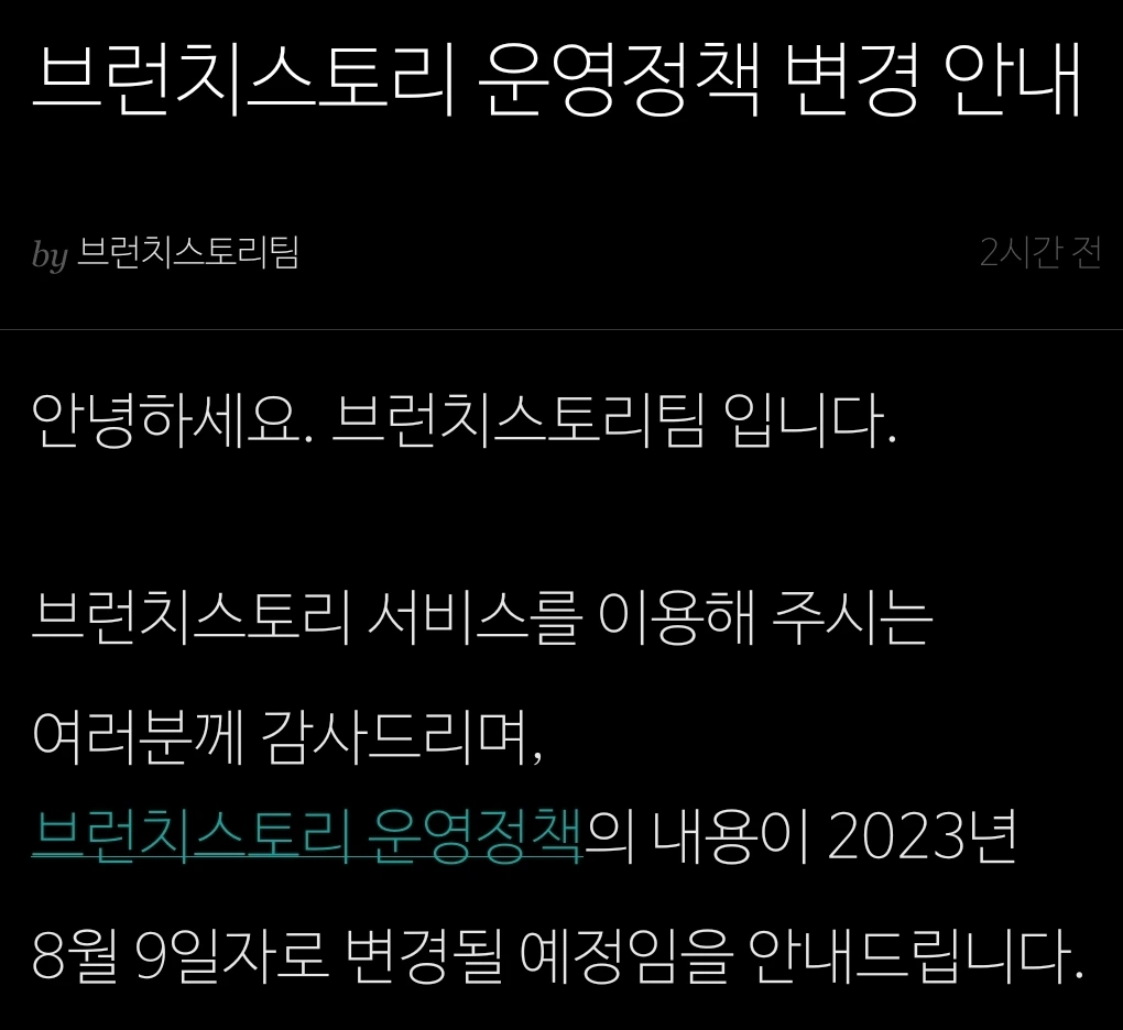 '브런치'에서 새로운 서비스를 선보인다고 합니다. 무려 [중요] 딱지를 붙여서 변경을 예고하였지요.