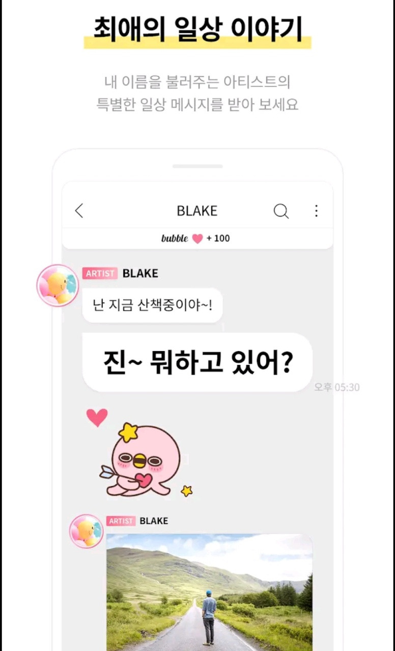 디어유가 운영하는 플랫폼 이름은 '디어유 버블(bubble)'이라고 하네요. 이름에서만 봐도 딱 '버블끼'가 있어 보입니다. 이 플랫폼이 뭐하는 것이냐 하면, '팬 들과 아티스트(연예인)의 소통 플랫폼'이라고 하네요. 그러니까 이 소통을 어떻게 하는가 하니, 구독을 하면 팬에게 1:1 채팅 형태의 '프라이빗 메시지'를 보내 준다고 합니다. 기계적으로 딱딱하게 가 아니라 '누구누구야~' 이렇게 이름을 넣어서 부드럽게 불러가면서 말이지요.