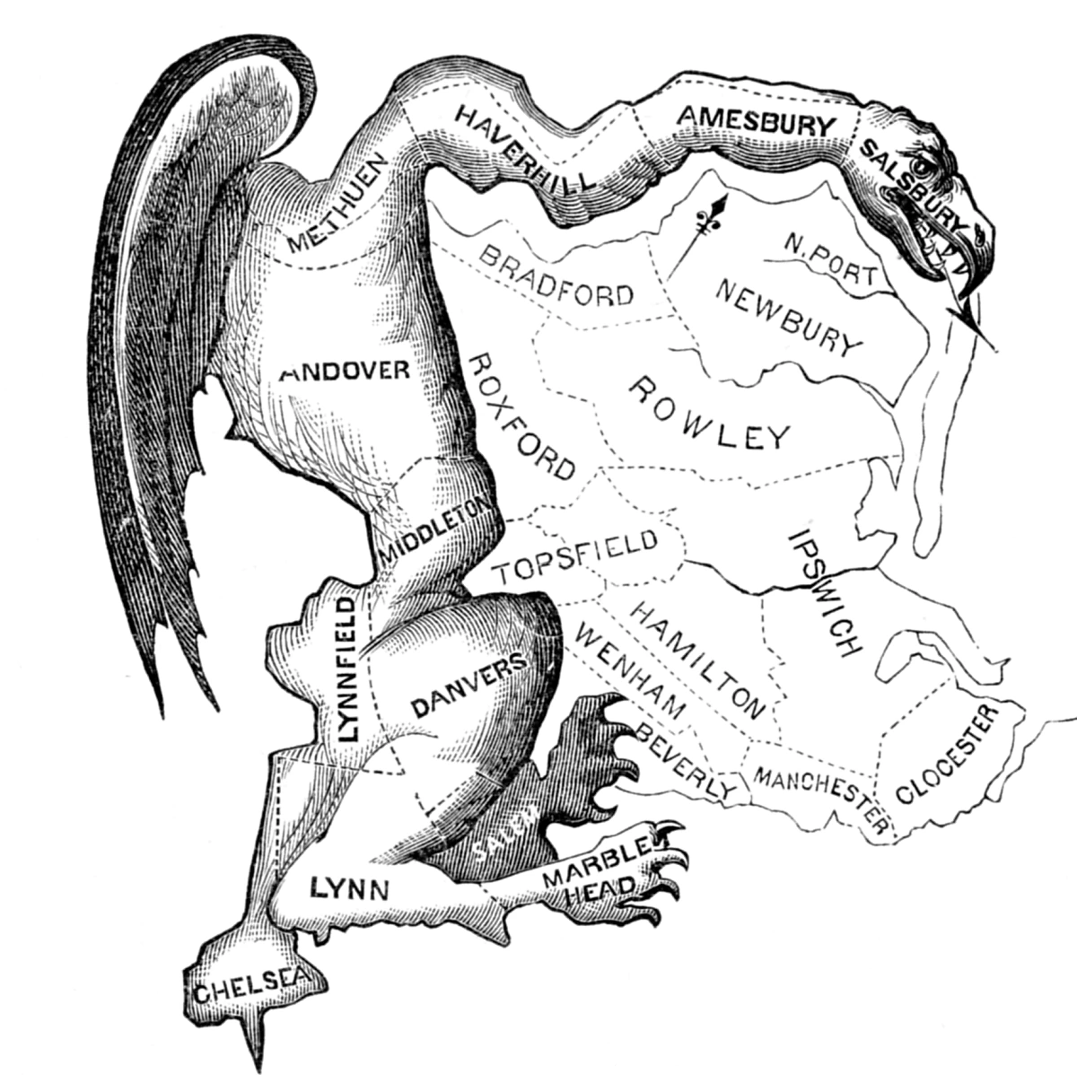 게리맨더링은 특정 정당이나 특정 후보에게 유리하도록 부당하고 기형적으로 선거구를 획정하는 것을 지칭한다. 1812년 미국의 매사추세츠(Massachusetts)주의 주지사였던 게리(Elbridge Gerry, 1744~1814)는 다가올 주 상원의원 선거에서 승리하기 위해 자신이 소속된 공화당에 유리하도록 선거구를 분할하는 선거구 개정을 강행하였다. 이후 보스턴 가제트라는 신문사가 분할된 선거구의 모양이 신화에 등장하는 괴물인 샐러맨더(salamander)와 비슷하다는 점에 착안하여 게리의 이름과 합성한 게리맨더(Gerry-mander)라는 신조어를 만들었으며, 샐러맨더가 메사추세츠주를 감싸고 있는 삽화를 함께 실어 비판하였다.(두산백과 인용)