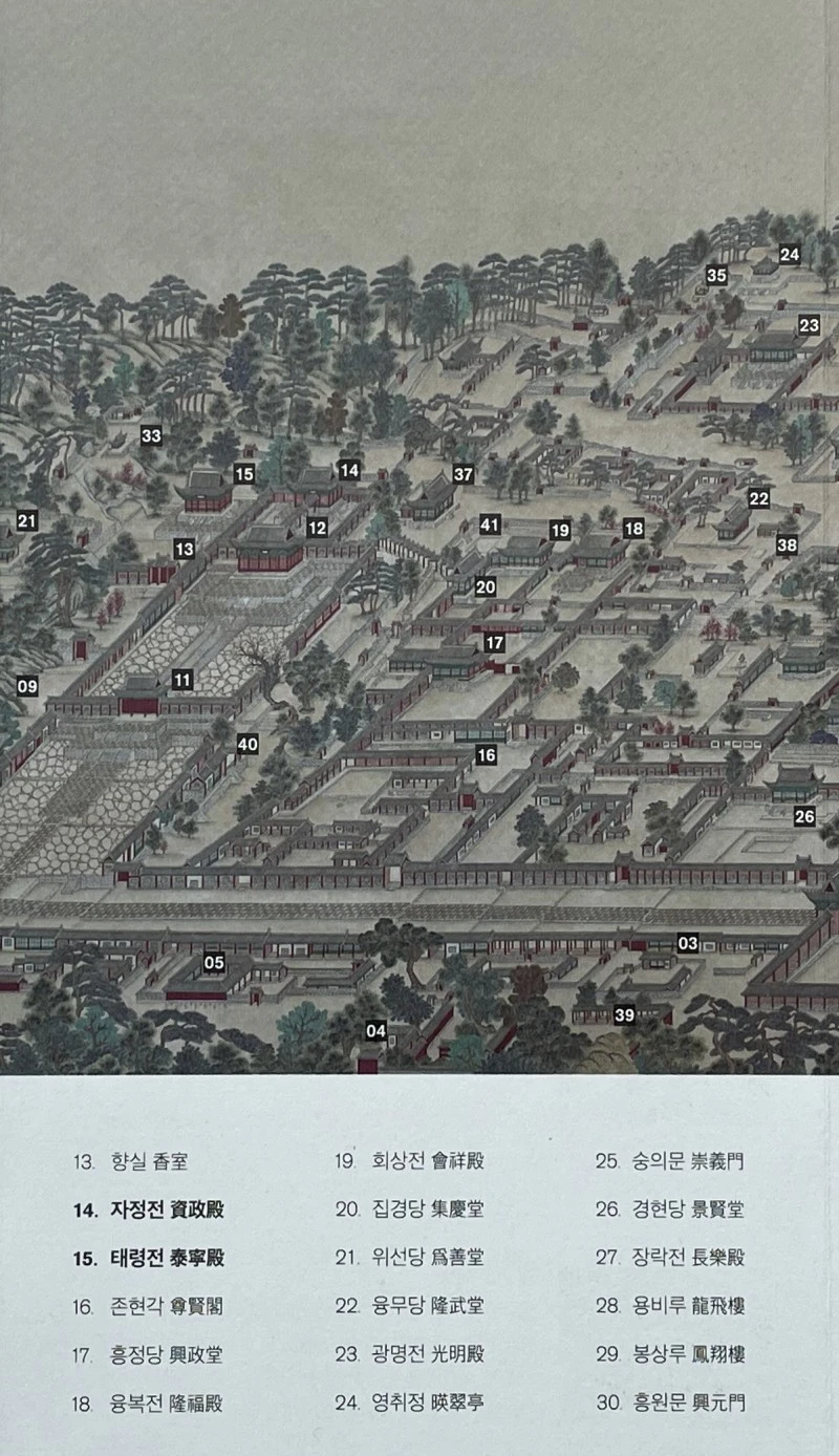 얕고도 짧은 자체 조사에 따르면 영취정은 경희궁의 후원 격으로 경희궁중 가장 지대가 깊고 그윽한 곳에 위치한 전각이었다고 합니다. 담이 없는 정면 4칸 측면 3칸의 전각으로 동, 북, 서편이 빈 마당에 이어 숲으로 둘러싸여 있어 자연의 숲에 접하여 심신의 안정을 찾을 수 있었던 장소로 보이지요.그래서 영취정(映翠亭)이란 호칭이 붙었나 보구요. 심신의 안정뿐 아니라 궁궐의 맨 끝 구석에 있어 연애하기도 아주 좋아 보입니다. 그러나 현재 남아 있는 경희궁은 한참 축소된 일부이고 원래 영취정의 자리는 현재의 성곡미술관이 위치한 장소 정도가 될 것 같다지요. 경희궁과 영취정은 온데 간데 없고 '경희궁 자이'가 그 위상을 대신하고 있으니 그때 경희궁 자이 청약에 광탈한 저로서는 더욱 씁쓸함을 금치 못할 일이지요.