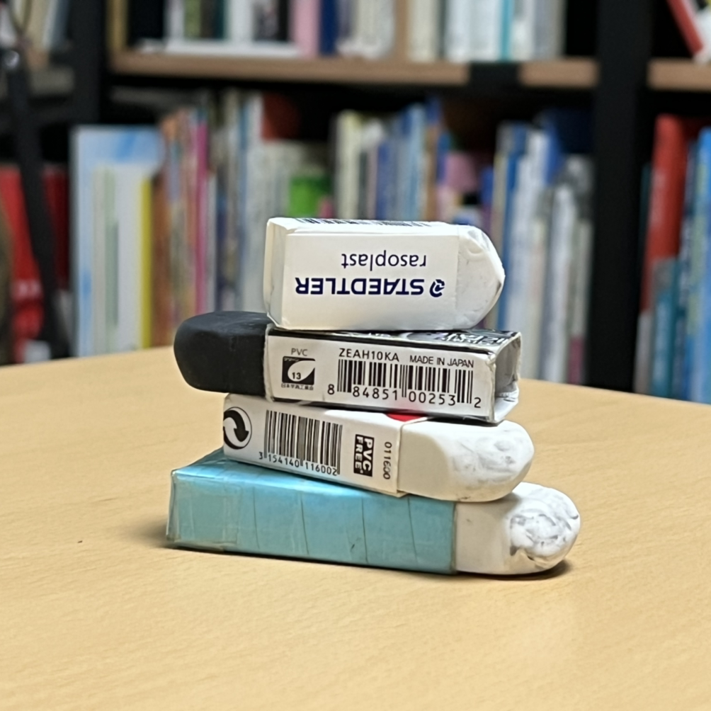 지우개질은 세심한 기술을 요한다. 어깨부터 힘을 실어 박박 지우개질을 하면, 지우려던 문장의 앞뒤까지 힘이 전해져 덩달아 지워지거나 노트가 찢긴다. 모서리로 꾹꾹 눌러 지우자면 다른 필기에 방해는 안되지만 지우개를 뾰족하게 관리해야 한다. 그 둘 사이 어딘가의 힘과 기술로 적절하게 지워내야 한다.