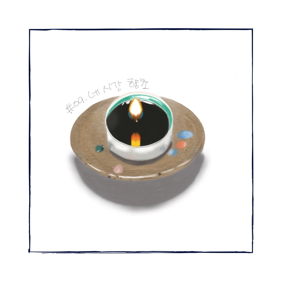 그림의 초는 '네 시간 향초'라는 이름을 가졌다. 동그란 초 하나를 바닥까지 태우는 데 걸리는 시간은 네 시간. 오전 혹은 오후의 한 때를 채울 정도의 시간이다. 초의 표면이 균일하게 녹기 전에 꺼져버릴까 신경 쓰거나, 갑자기 자리를 비워야 해 타는 초를 아쉽게 끄지않아도 되는 적절한 크기와 시간이다. 분위기와 분주함을 모두 잡았으니, 일단 잔뜩 사두고 아껴가며 불을 붙이는 중이다.