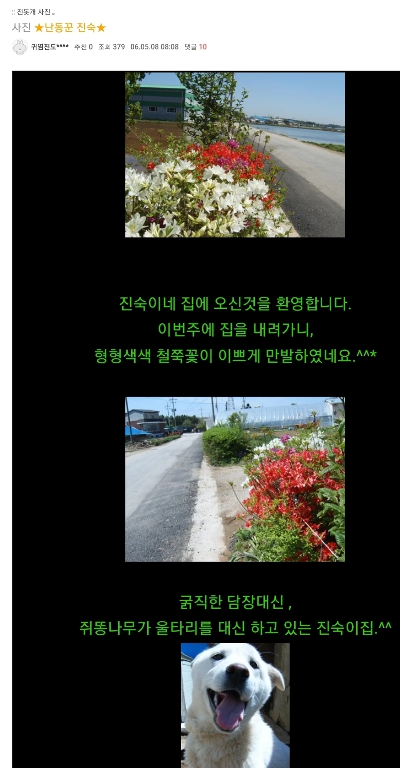 진숙이와 함께했던 15년 전 기록이다. 이미 하늘나라에 있는 강아지와의 추억.