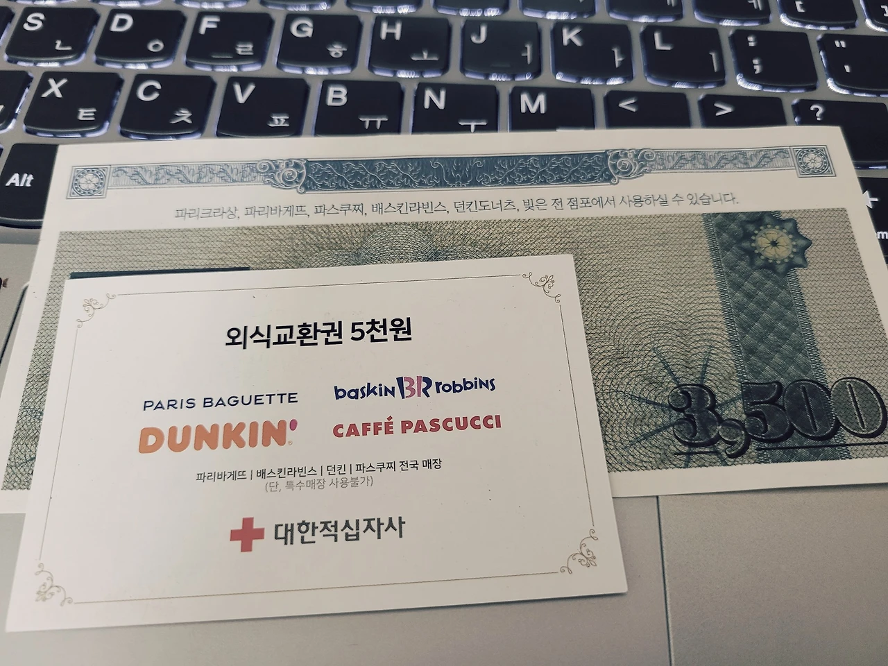 남편의 농축적혈구가 필요해 헌혈하는 건데, 다른 사람을 돕는 것도 아닌데, 어떤 선물을 갖고 싶은지 고르란다. 관계를 묻지 않고 주겠다는데 마다할 사람이 어딨겠는가. 나는 헌혈이 끝난 후 외식 교환 상품권 8,500원, 비스킷, 음료수 1개를 선물로 받았다.
