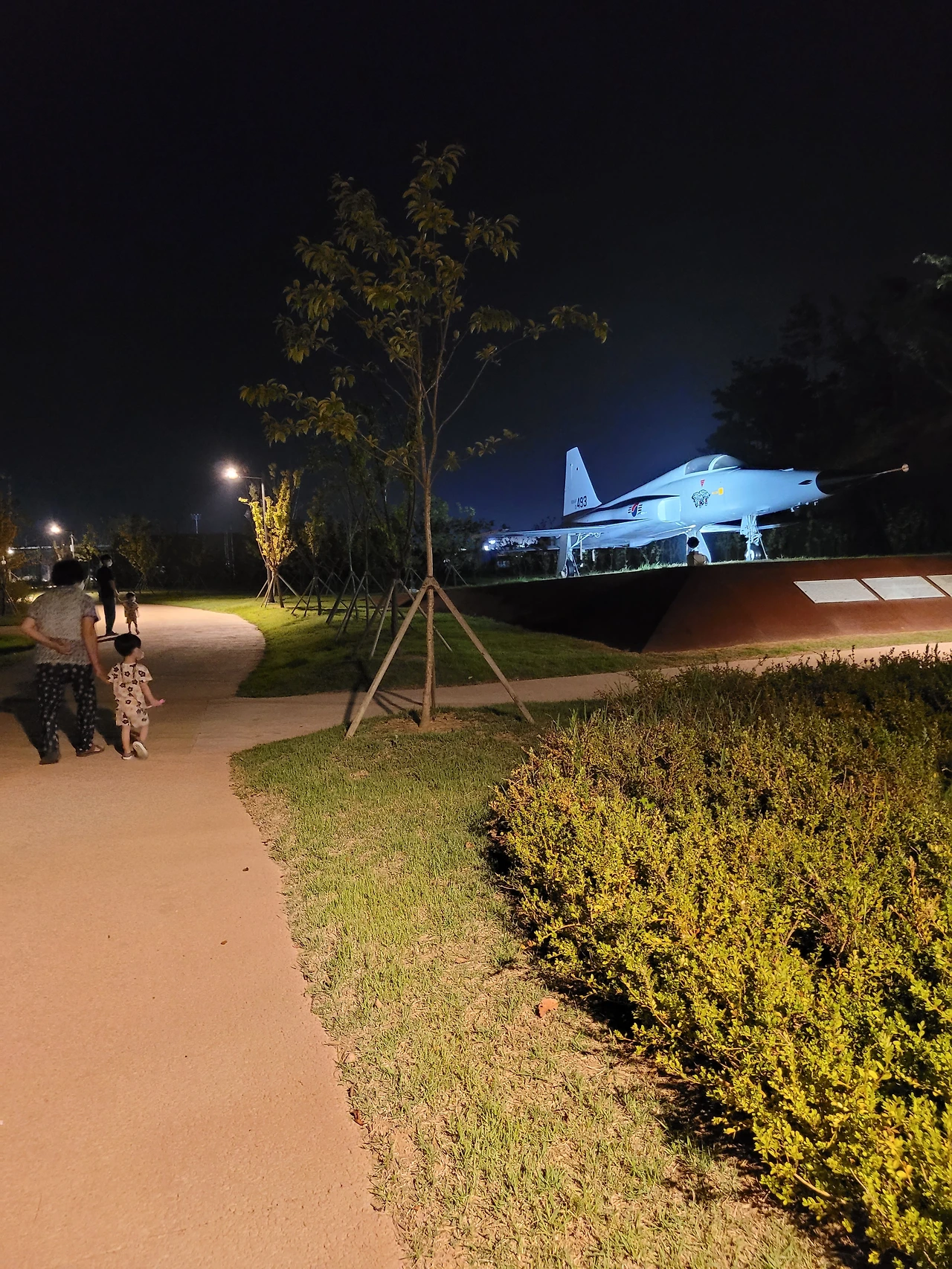 파란 불빛이 비치는, 오래전 그날 미군이 직접 운행을 했던 493호 비행기. 앞뒤 두 사람이 탔을 법한 운전석에는 노란 머리 미군이 앉아 손을 흔들 것 같은 느낌이 드는 건 왜일까?(기가 약한 나는 어디서 건 쓸데없는 상상을 한다.) 비행기를 한참 바라보다가 현실감 없는 상상을 하지 않으려고 시선을 피했다.