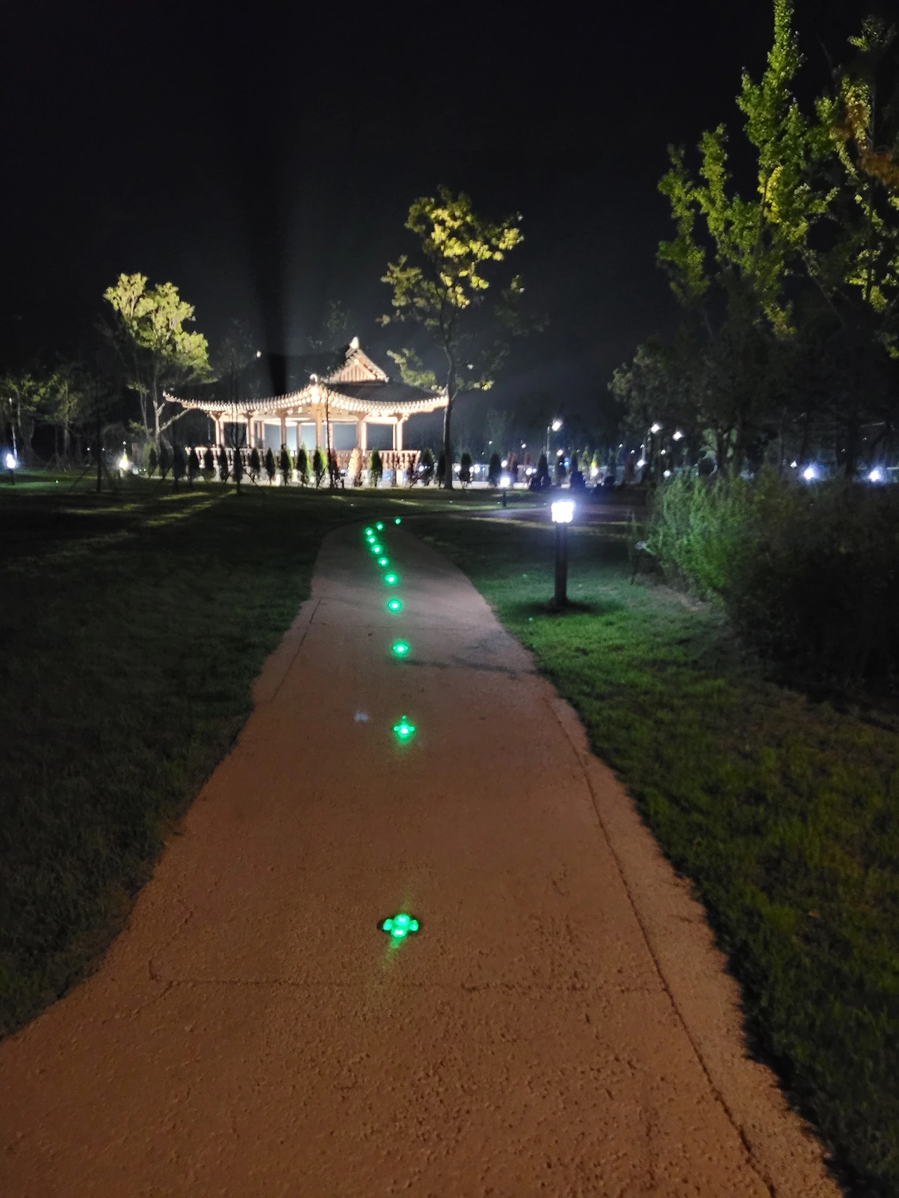사람이 아무도 없는 곳. 살짝 오싹한 느낌이 감도는 늦은 밤이었지만, 우려와는 다르게 아이들은 신난 모습이다. 첫째는 할머니 손을 잡고, 둘째는 아빠 손을 잡고 나란히 걸어갔다. 가는 길마다 벤치는 엉덩이를 붙이고 쉬어가기를 재촉했지만 늦은 밤이라 지체할 틈이 없었다. 우리의 목적은 처음부터 끝까지 걷는 게 목적이므로 지나치는 벤치마다 쉬었다 가기에는 무리가 있었다.
