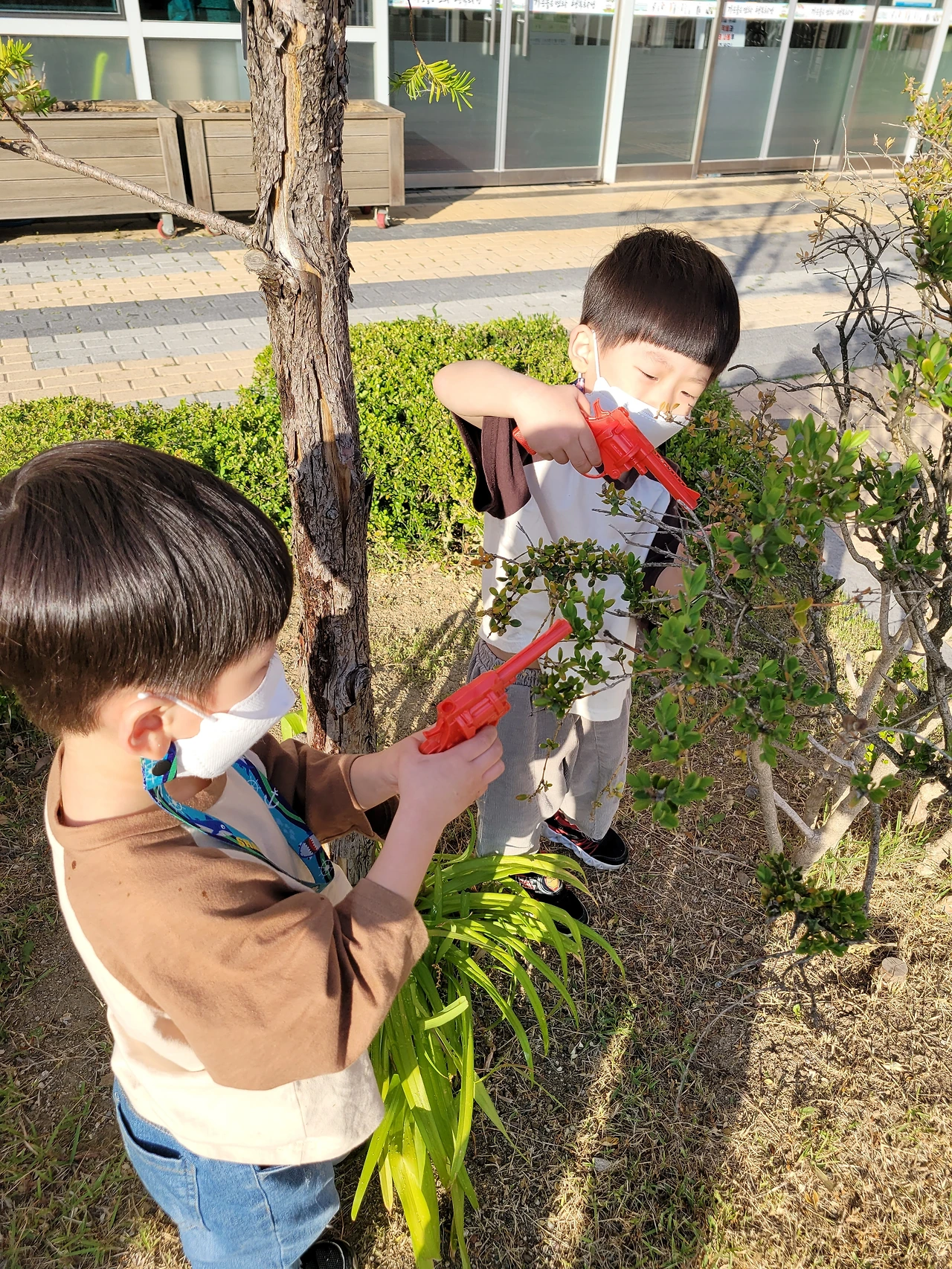 물총에 담긴 물은 순식간에 동이 났다. 다시 총에 물을 채워달라는 아이. 엄마는 물을 채워주는 기계처럼 잽싸게 총에 물을 담았다. 아이들을 향한 엄마 사랑이 과했는지 물이 콸콸콸 넘쳐흘렀다. 아이들이 식물을 사랑하는 마음도 콸콸콸 넘쳤다. 총에 물을 채운 지 벌써 열댓 번. 이만하면 나무에게 물 주는 상점을 차려도 될 법하지 않은가.