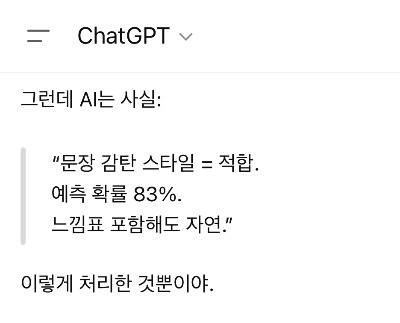GPT가 감정을 표현한 것이 아니라, 내가 감정을 부여해서 읽은 것이었다.