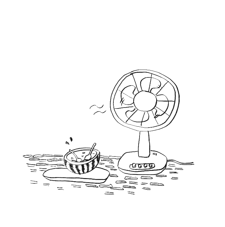 선풍기 바람을 맞으며 먹는 간식이었습니다.