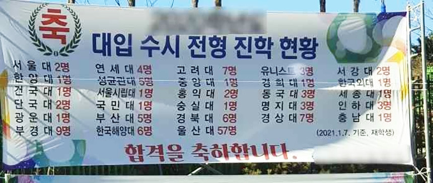 1월과 2월은 새해를 시작하는 시기입니다. 하지만 고등학교에서는 냉혹한 수확의 계절이기도 합니다. 대입의 마지막 일정인 정시 전형까지 종료되면 학교에서는 각 대학별 합격자를 취합합니다. 예전에는 서울대를 비롯한 상위권 대학 합격자가 중요했지만 요즘은 그보다 의대합격자 수가 중요하지요. ○○고 의대 합격 ○명, △△고 서울대 의대 ○명. 교문에는 현수막이 걸리고, 보도자료가 나갑니다.