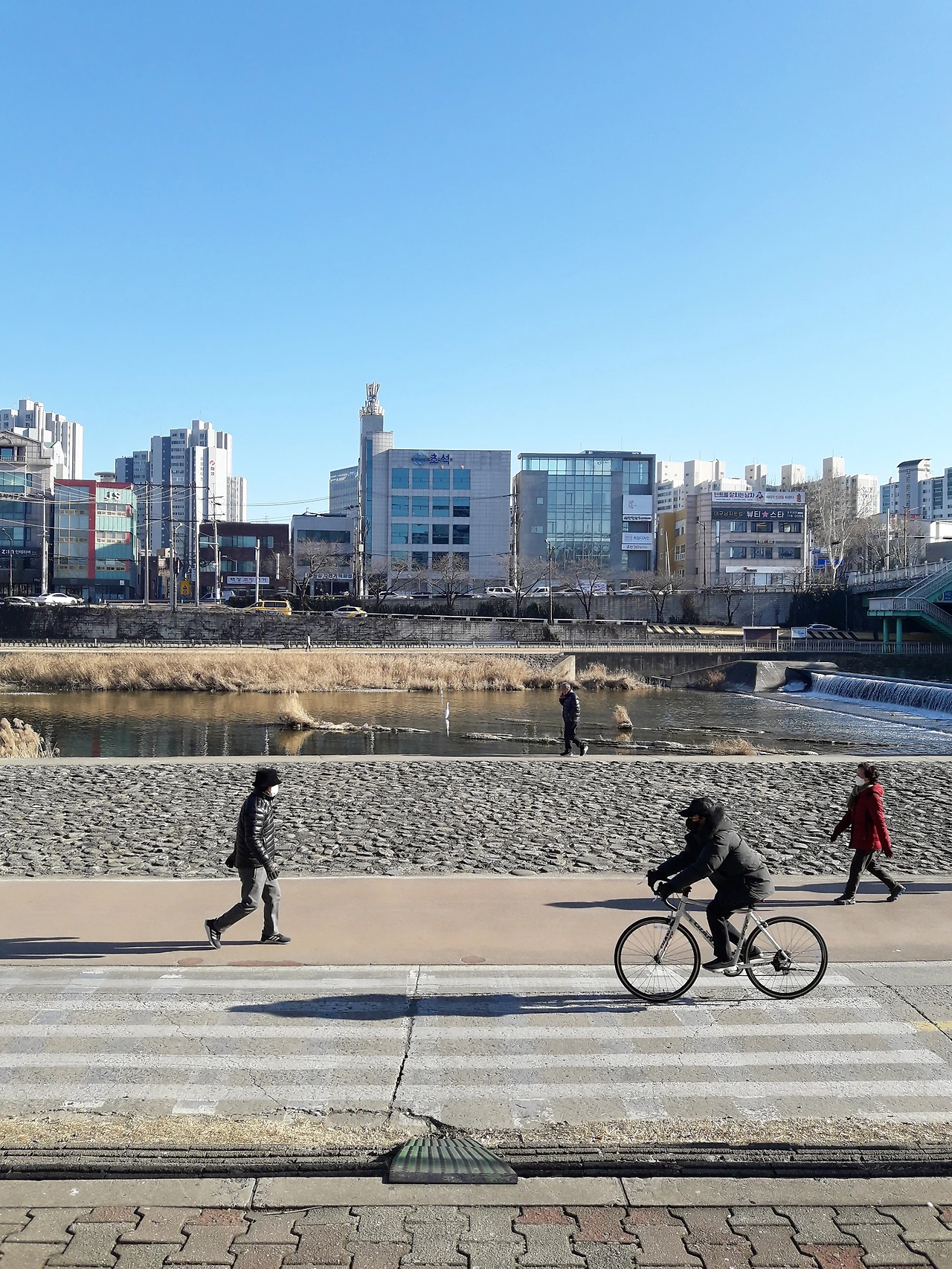 그럴 때면 커피를 마셔서 카페인의 도움을 받아 심박수를 높이고 뜨개질처럼 집중해서 할 수 있는 재미있는 것들을 일부러 찾아서 해야 합니다. 막상 뭐든 하면 또 아무렇지 않게 하니까요. 왜 여태 뭉개고 있었나 싶고요. 무엇보다도 좋은 방법은 밖으로 나가는 것입니다. 바람을 쐰다고 하죠. 국립국어원에서 운영하는 온라인 국어사전인 우리말 샘에서도 “바람 쐬다”는 관용구의 뜻을 설명하면서 “기분전환을 위해서”라는 표현을 딱 붙였네요. 바람을 쐬면 기분전환이 됩니다. 워낙 대기질에 둔감해서 미세먼지 농도는 느끼지도 못하고, 어느 정도 덥거나 추운 건 그냥 그런가 보다 하고, 매일 다니는 길이라 익숙하거나 마땅히 볼거리가 없는 동네여도 좋다고 다닙니다. 걷기 체질이죠. 특히 해가 떠 있는 시간이라면 더 좋습니다. 햇볕을 받으며 걷다 보면 에너지가 충전되는 기분이고 어디를 가볼까, 뭔가 해볼까 하는 마음이 생기거든요.