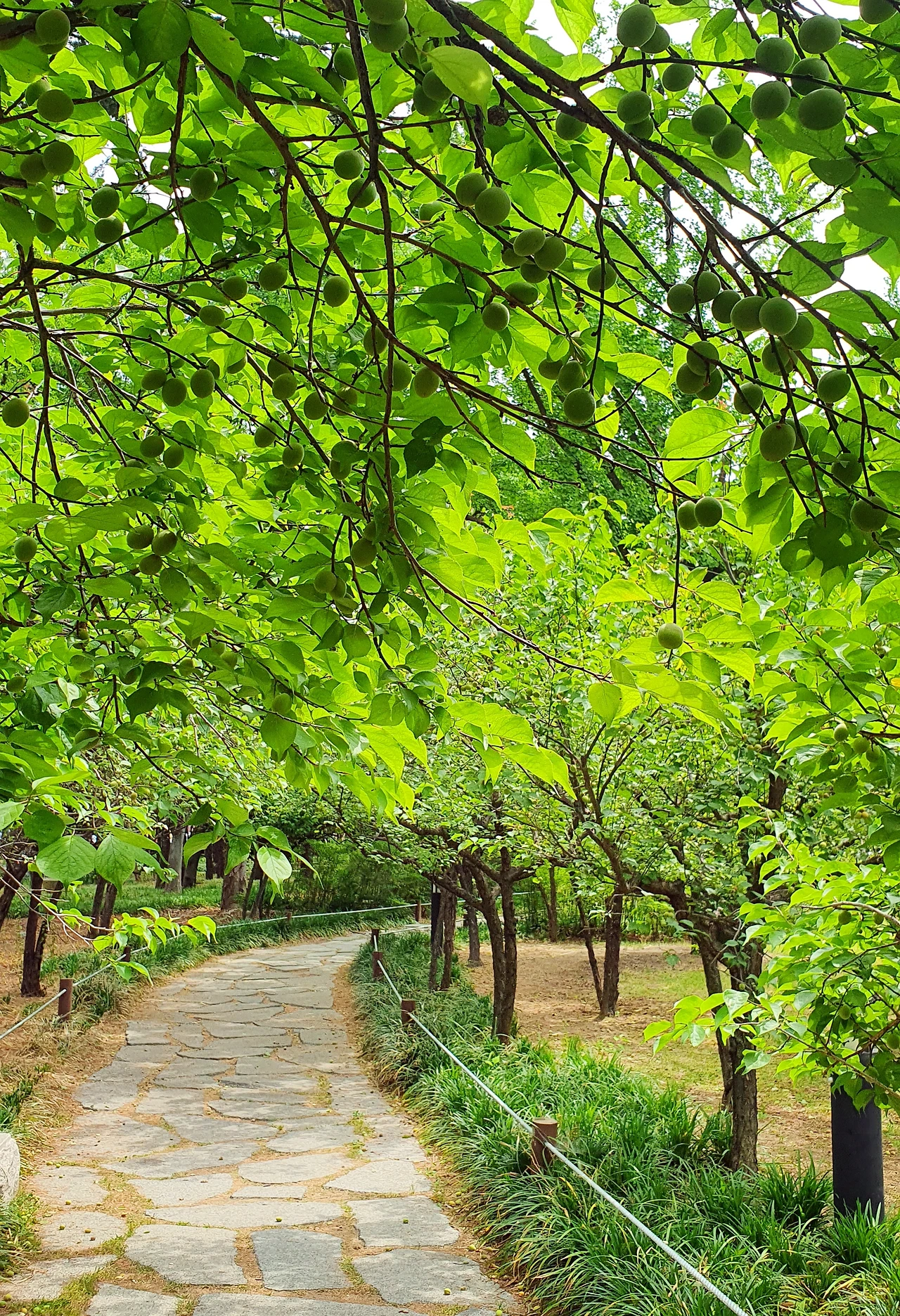 오랜만에 동네 공원에 갔더니 나무마다 초록이 무성합니다. 그중에 키 작은 매화나무가 양 옆에 늘어선 짧은 길이 눈에 띄었습니다. 사람의 눈이 참 신기해요. 키 큰 나무들 천지인 공원에 있으니 오히려 키 작은 나무가 눈에 띄다니 말이죠. 낮은 나무터널 아래를 지나가 봅니다. 발에 무언가 밟혀서 보니 매실이군요. 그제야 눈앞으로 늘어진 나뭇가지에 주렁주렁 열린 매실이 보입니다. 아, 지난 3월 초에 짙은 분홍색의 꽃이 흐드러지게 피어 꽃 터널을 만들었던 매화나무길입니다. 그때 이 꽃길이 얼마나 예뻤는지 모릅니다. 무심코 공원을 가로질러 가던 사람들도 다가가서 핸드폰을 꺼내 들고 사진을 찍게 만들었으니까요. 매화터널 안에서도 가장 꽃이 풍성하고 길이 꺾이면서 드라마틱한 분위기가 연출되는 지점에서는 사진을 찍으려는 사람들이 순서를 기다리기도 했었죠.