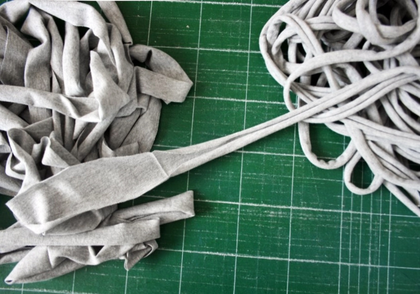니트 원단으로 만든 패브릭 얀 / 코바늘 짧은뜨기