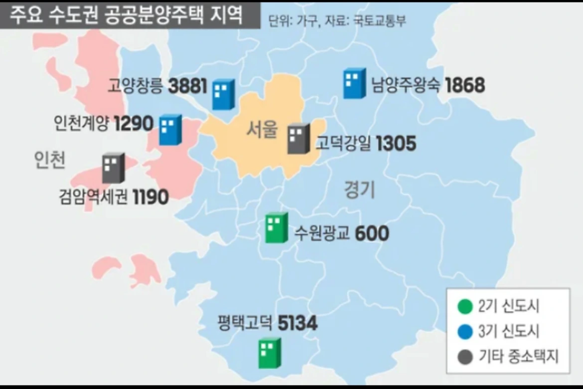2025년 11월, 국토교통부가 발표한 2026년 공공분양 계획. 수도권에 총 2만9천호가 공급되는데, 그중 창릉신도시가 3,881호로 최대 물량입니다. 남양주왕숙이나 인천계양보다 2배 가까이 많아요.