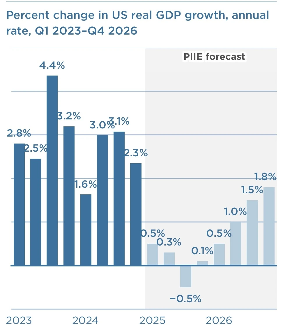 미국 피터슨국제경제연구소(PIIE)는 2026년 글로벌 GDP 성장률을 2.8%로 전망하며, 2024년 3.2%에서 하락할 것으로 예측했습니다.