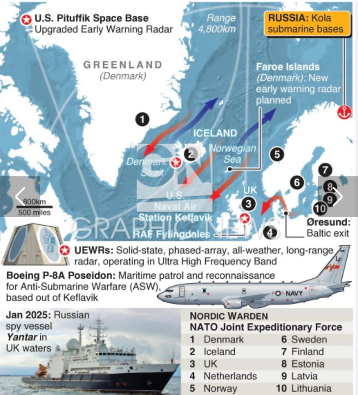 그린란드는 GIUK Gap(그린란드-아이슬란드-영국 해협) 위에 있습니다. 러시아 잠수함이 대서양으로 나가려면 반드시 통과해야 하는 병목 지점. NATO의 핵심 방어선이죠.