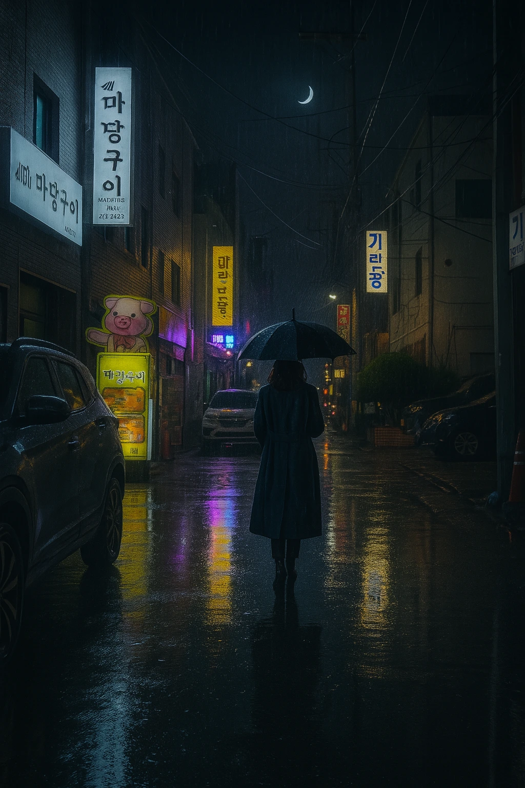 수덕이 창고 천장을 가리켰다. 틈새로 스며든 달빛이 물방울을 타고 내려와 바닥의 기름 얼룩과 부딪쳤다.