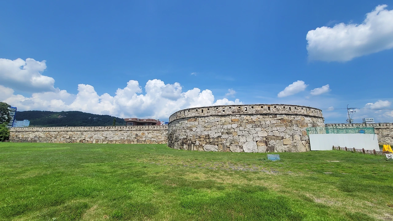 성문 앞을 반달처럼 감싸 안은 그 공간, 원을 그리는 벽과 길의 선이 마치 한 움큼의 바람을 붙잡아 둔 듯 고요했다.