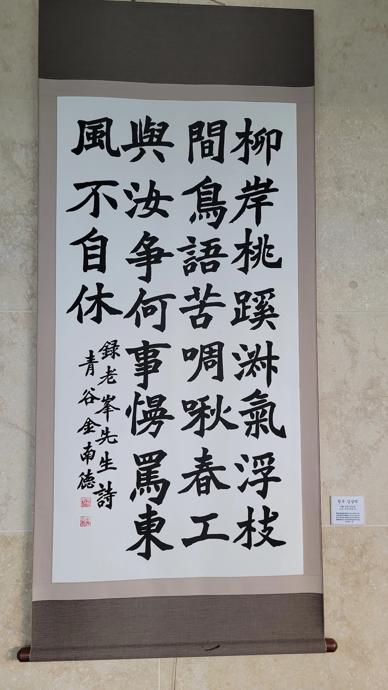 즉, 원작시는 금노필 선생의 작품이고, 글씨는 청곡 김남덕 선생이 쓴 것으로 보입니다.