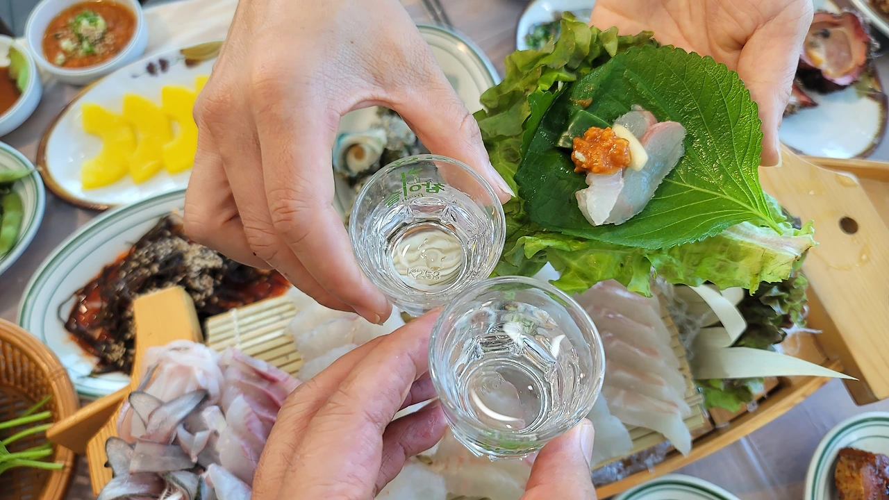 잔이 부딪히는 소리는 마치 파도가 방파제를 치는 소리처럼 경쾌하다. 목을 타고 넘어가는 소주는 단순한 술이 아니다. 오늘 바다와 어울린다는 작은 의식, 추억을 부르는 노래와 음식이 어우러지는 순간의 증표다.