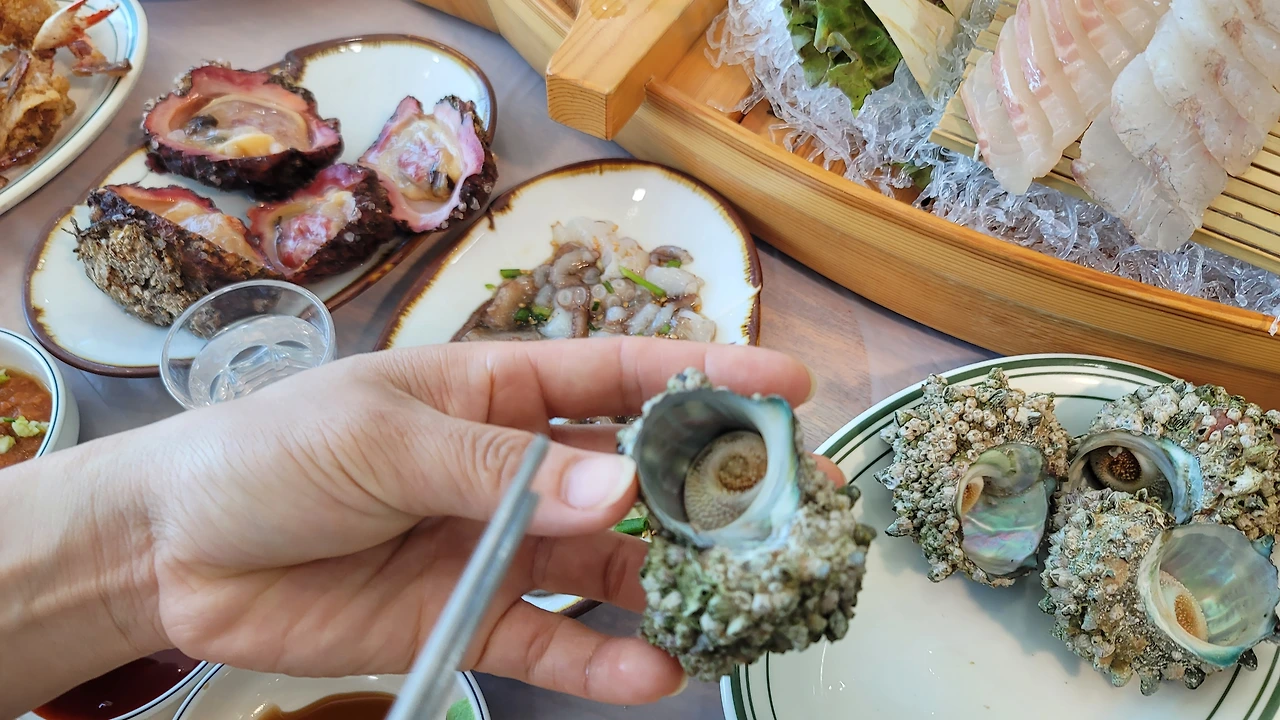 전복과 멍게, 해삼: 바다의 쌉쌀한 미네랄 향이 입안에서 터져 나오며, 씹을수록 시원한 바다의 속살이 전해진다.
