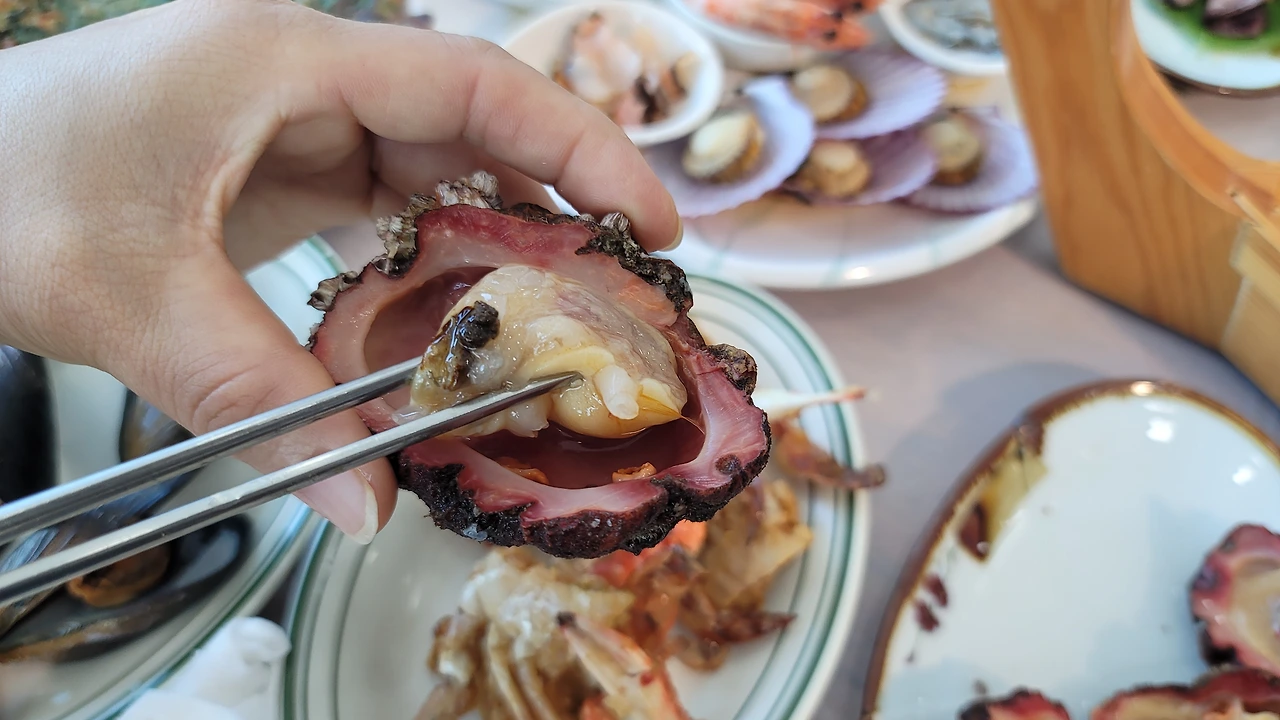 새우와 조개찜: 바다에서 갓 건져 올린 듯 탱글탱글한 새우의 단맛, 입안에서 바다의 불꽃처럼 터지는 조개의 육즙.