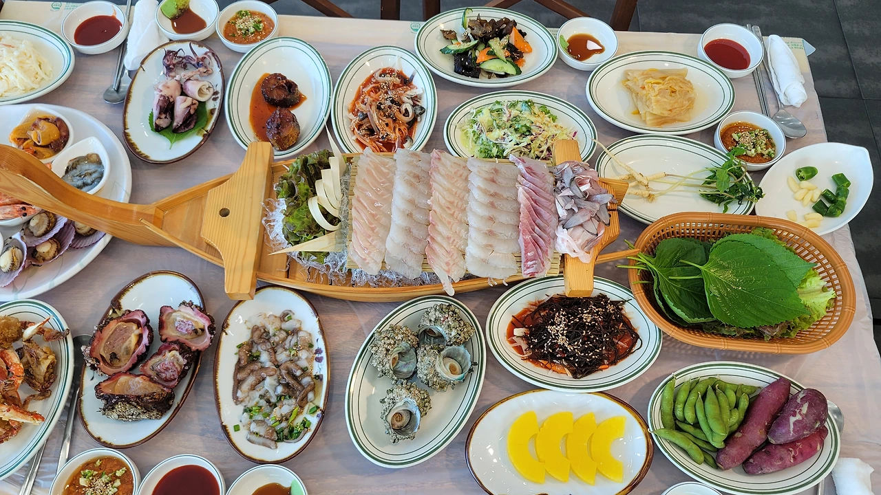 상 위에는 마치 바다를 그대로 퍼올린 듯한 음식들이 가득하다.