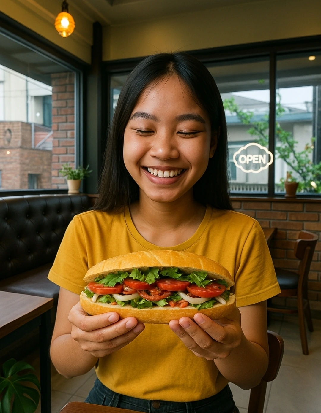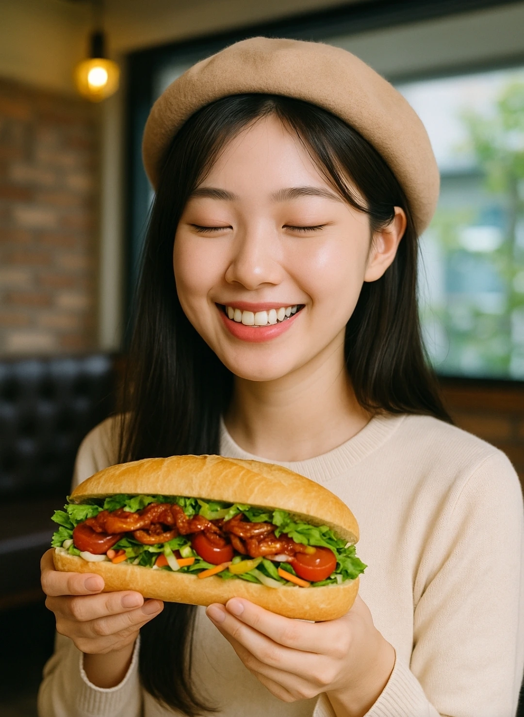 따뜻한 바게트 속에서 야채와 고기가 숨을 쉬고 있었다.