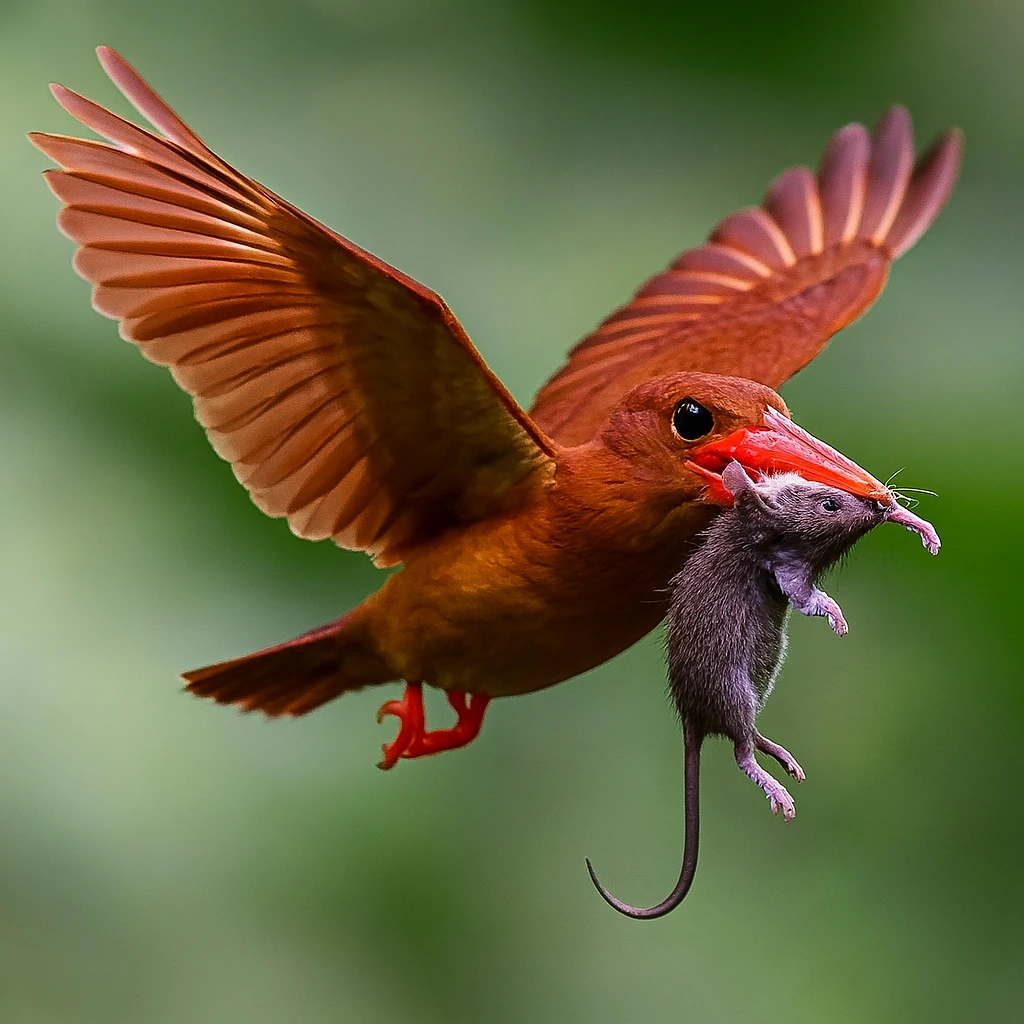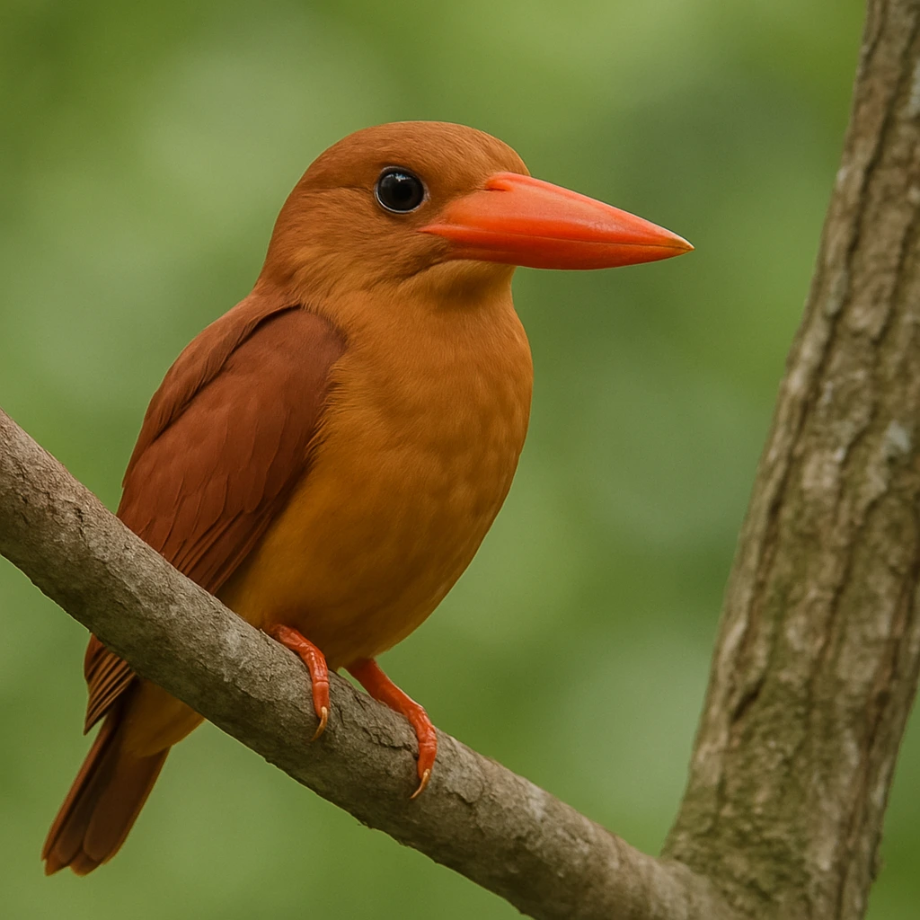 붉은빛이 도는 갈색 깃털과 선명한 주황빛 부리가 인상적인 이 새는, 강가와 숲 속 깊은 곳에서만 볼 수 있는 드문 손님이다.