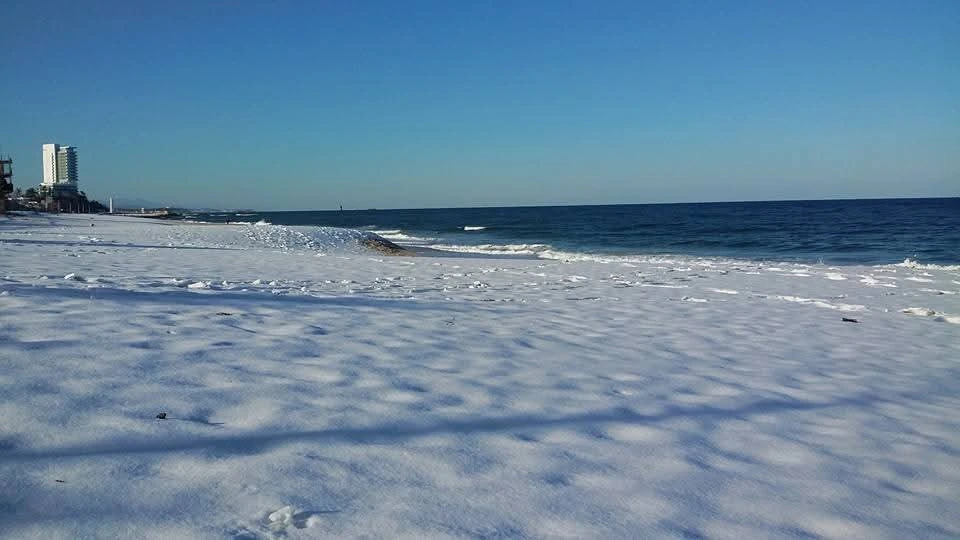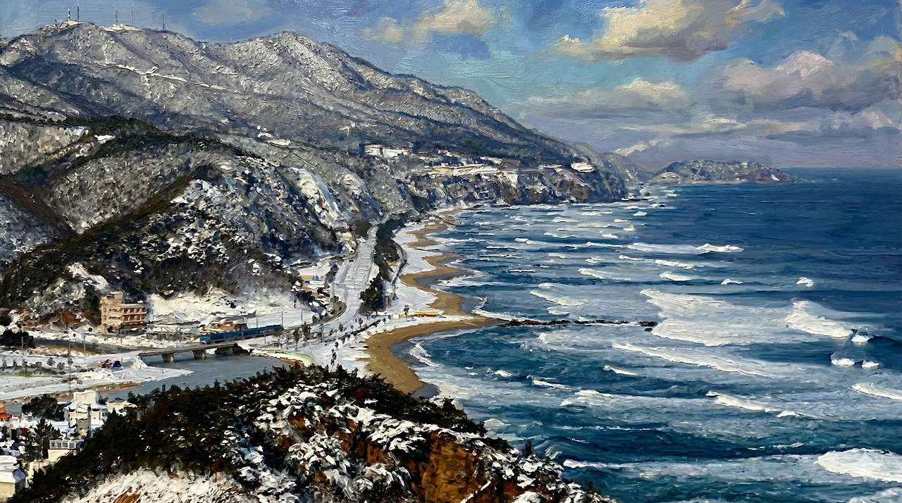 황금빛 모래사장이던 경포 해변은 부드러운 하얀 담요를 덮었고, 푸른 바다와 하얀 해변의 경계는 아직 물감이 마르지 않은 수채화처럼 아득하게 번져 있었습니다.