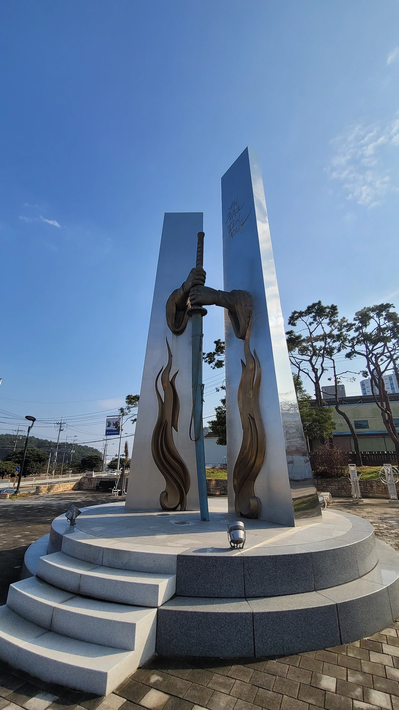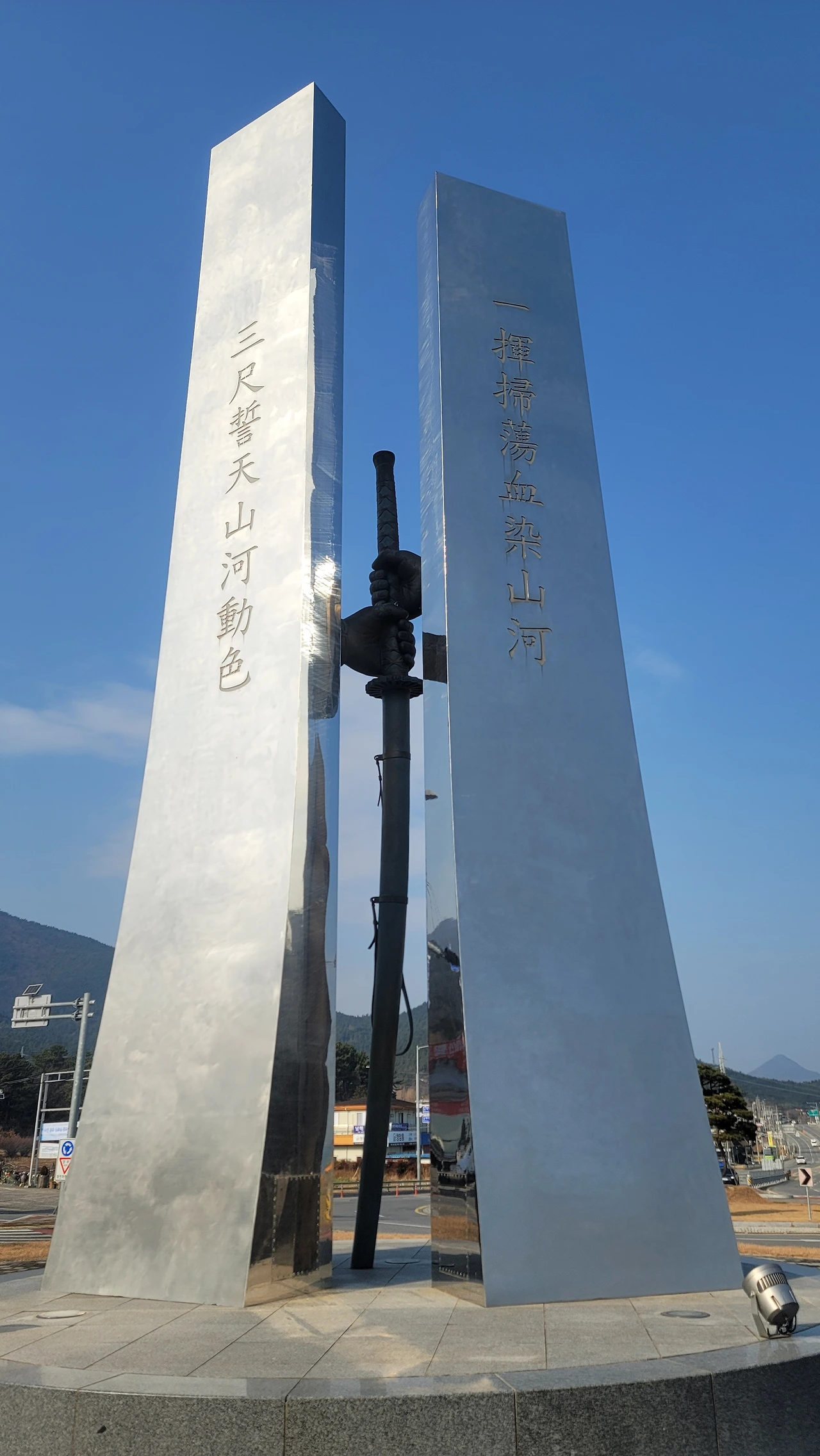 날이 선 듯 매끈하고, 하늘을 향해 수직으로 서 있다. 사람의 형상도, 표정도 없다. 대신 한자가 새겨져 있다. 처음엔 읽히지 않는다. 읽으려는 순간보다, 먼저 느껴진다. 차갑고 무겁고, 쉽게 말을 걸지 않는 분위기.