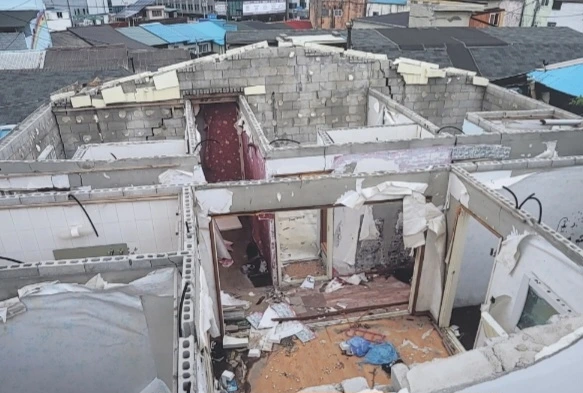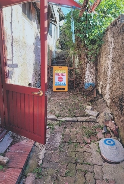 붉은 대문의 칠은 비늘처럼 벗겨져 내 손가락 끝에 붉은 얼룩을 남겼다. 출입구에 붙은 ‘석면 제거 고지서’의 문장은 너무 건조해서 오히려 잔인했다. 석면은 발암물질이다. 하지만 이곳에 쌓여온 것은 석면 가루가 아니라 부식된 시간이었다. 반복된 거래와 무시, 그리고 거대한 침묵. 지붕 위 슬레이트보다 그들의 시간이 더 깊이 몸속을 파고들어 폐부를 갉아먹었을 것이다. 형광등은 불규칙하게 깜빡였고, 나는 일부러 노출을 맞추지 않았다. 이곳의 삶은 애초에 정리된 밝기로 존재한 적이 없었기에.