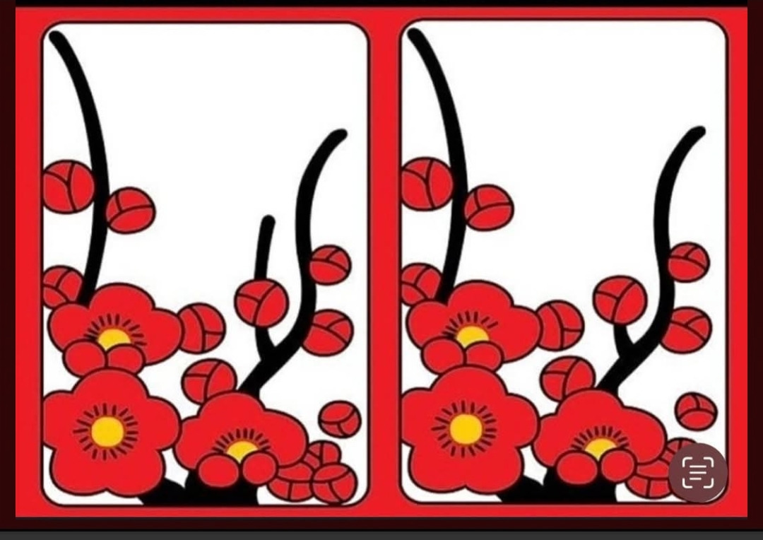 붉은 매화가 놓여 있다.