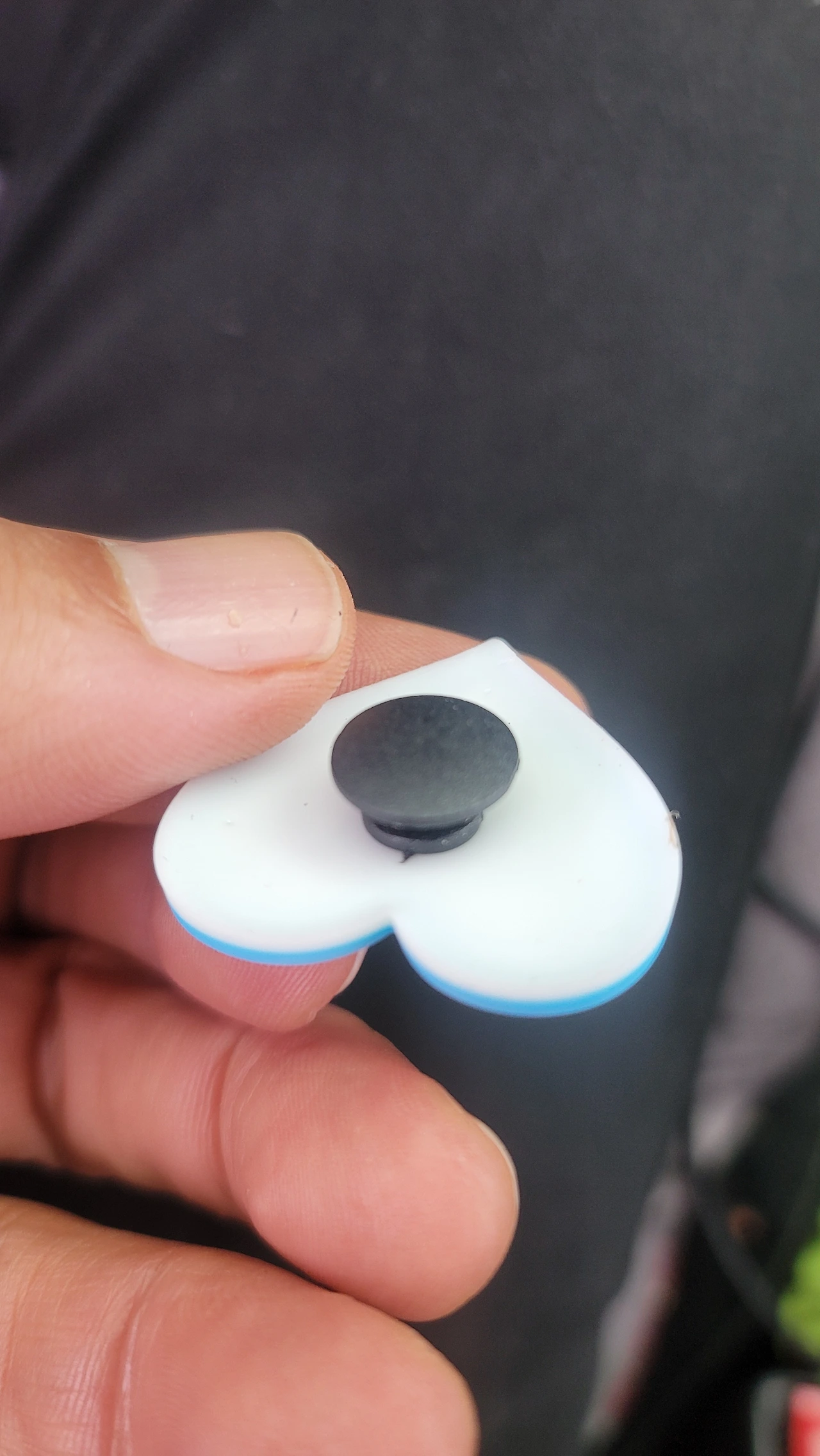 밖으로 나와 봉투를 열어보니 고무 재질의 작은 물건이 들어 있었다. 뒤쪽에는 동그란 고리가 달려 있었다.
