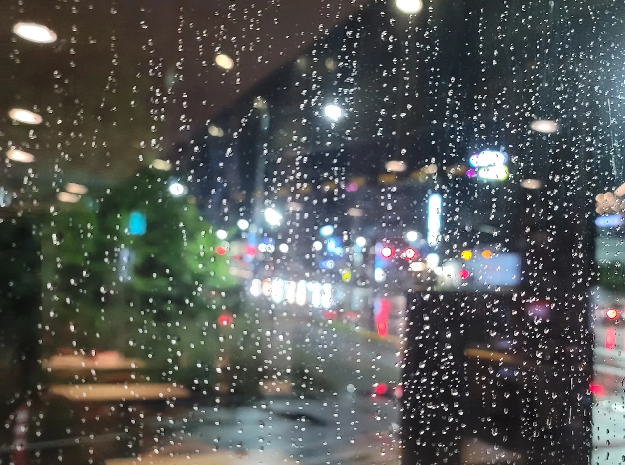지나가는 차량이 남긴 오래된 기름이 비에 씻겨 번지며, 특유의 금속적이고 묘하게 따뜻한 향이 공기 속에 섞여들었다.