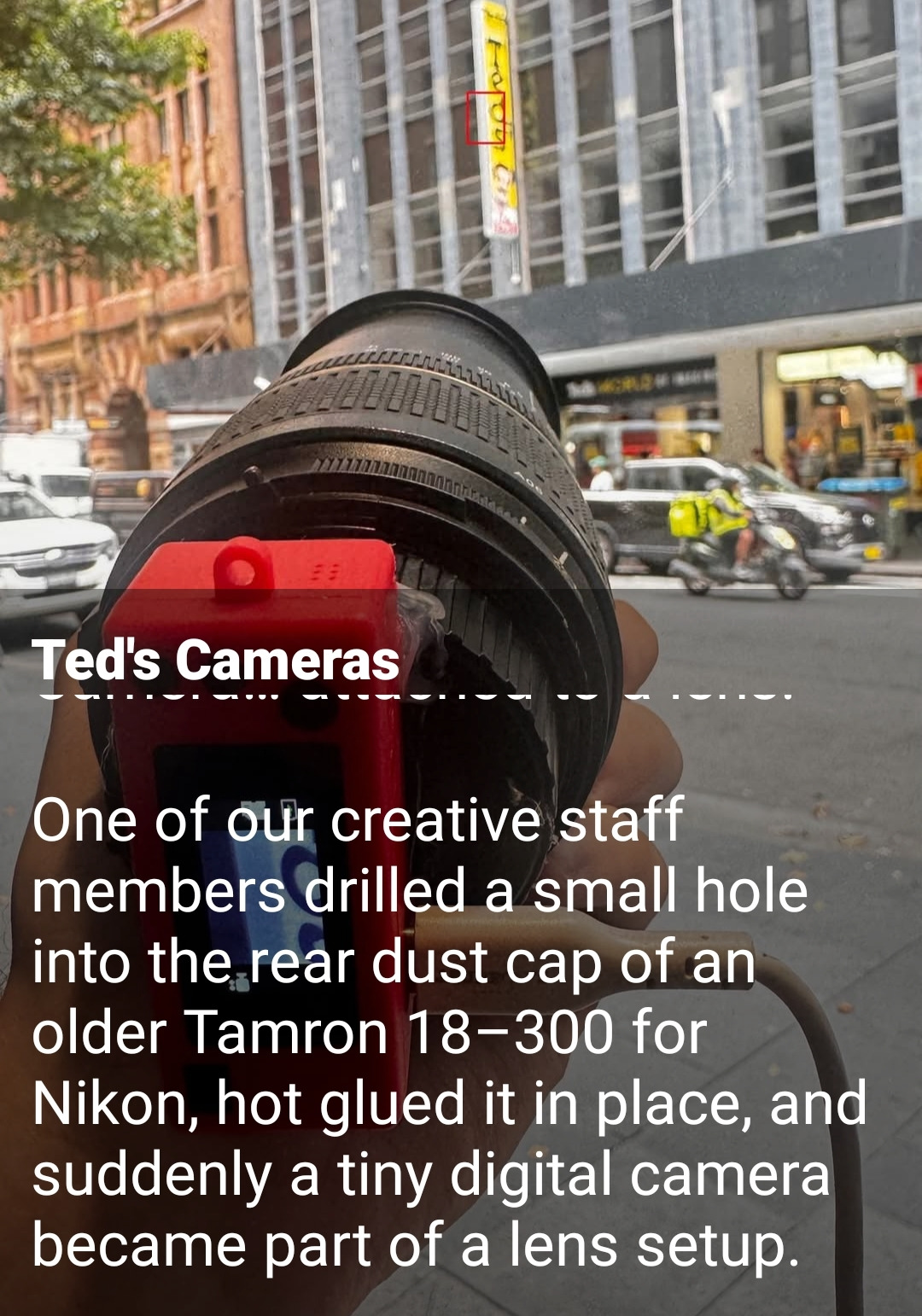 이미지 출처: 이 사진은 **'Ted's Cameras'**라는 카메라 관련 계정(매장 등)에 올라온 게시물로, 창의적인 개조 사례를 소개하는 내용입니다.