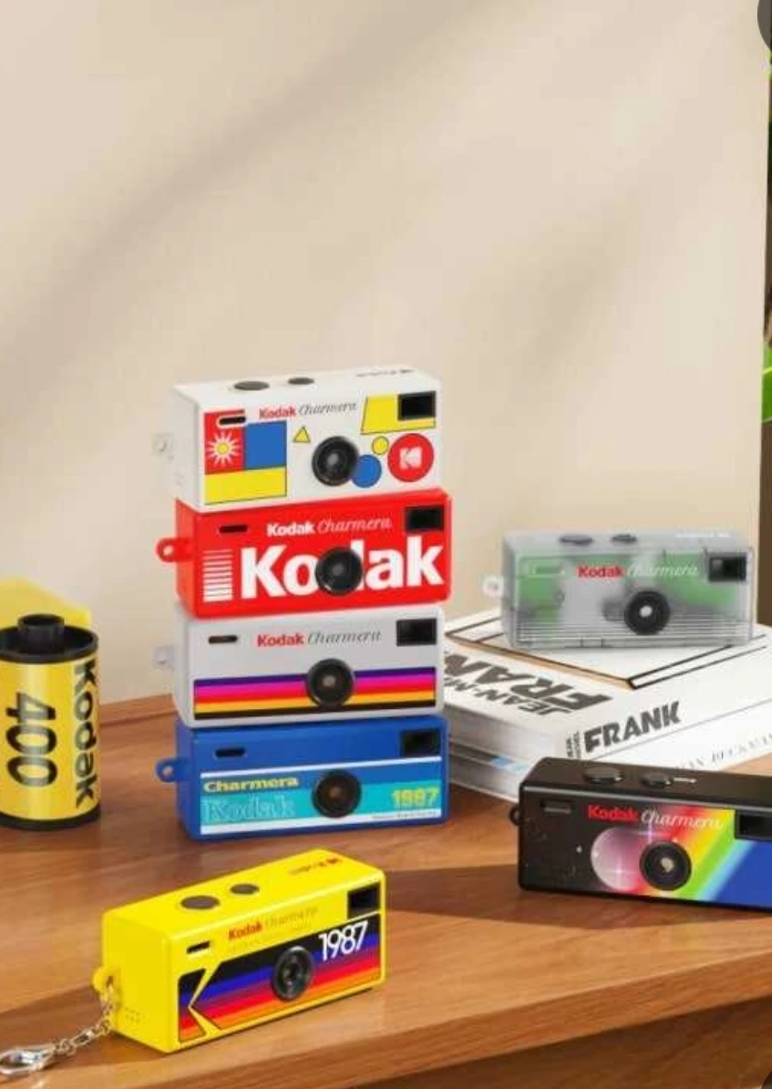 작은 빨간색 기기의 정체: 이미지 속 텍스트에 명시된 대로, **코닥(Kodak)**에서 출시했던 초소형 토이 디지털 카메라 샤메라(Charmera)'
