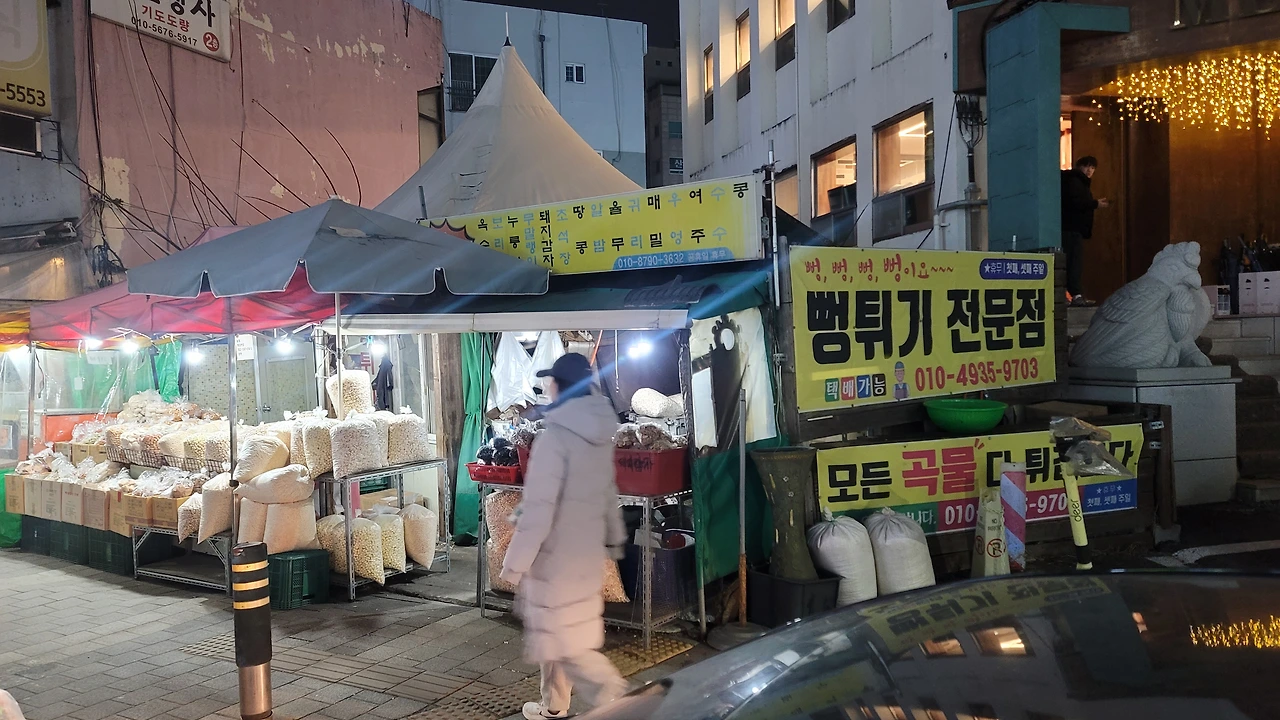 ​원주 남부시장, 큰길가 바로 옆에 자리 잡은 작은 뻥튀기 가게. 무심코 지나치기 쉬운 길목이지만, 걸음을 멈추고 다가가면 투명 비닐봉지 속에 담긴 다채로운 계절이 보인다. 서리태, 보리, 쌀, 그리고 노란 옥수수. 봉지 하나를 집어 들며 주인아저씨께 물었다.