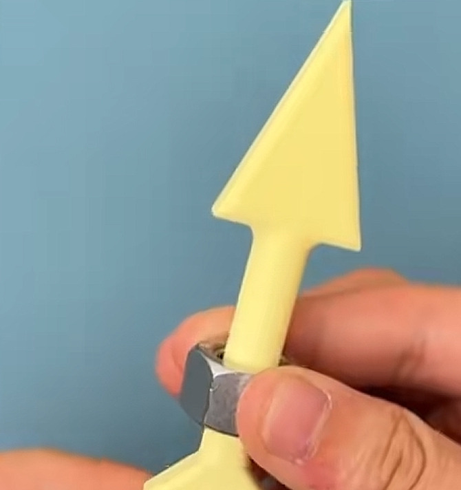 하지만 몇 초 뒤, 너트는 허무하리만큼 매끄럽게 화살 촉을 통과한다.