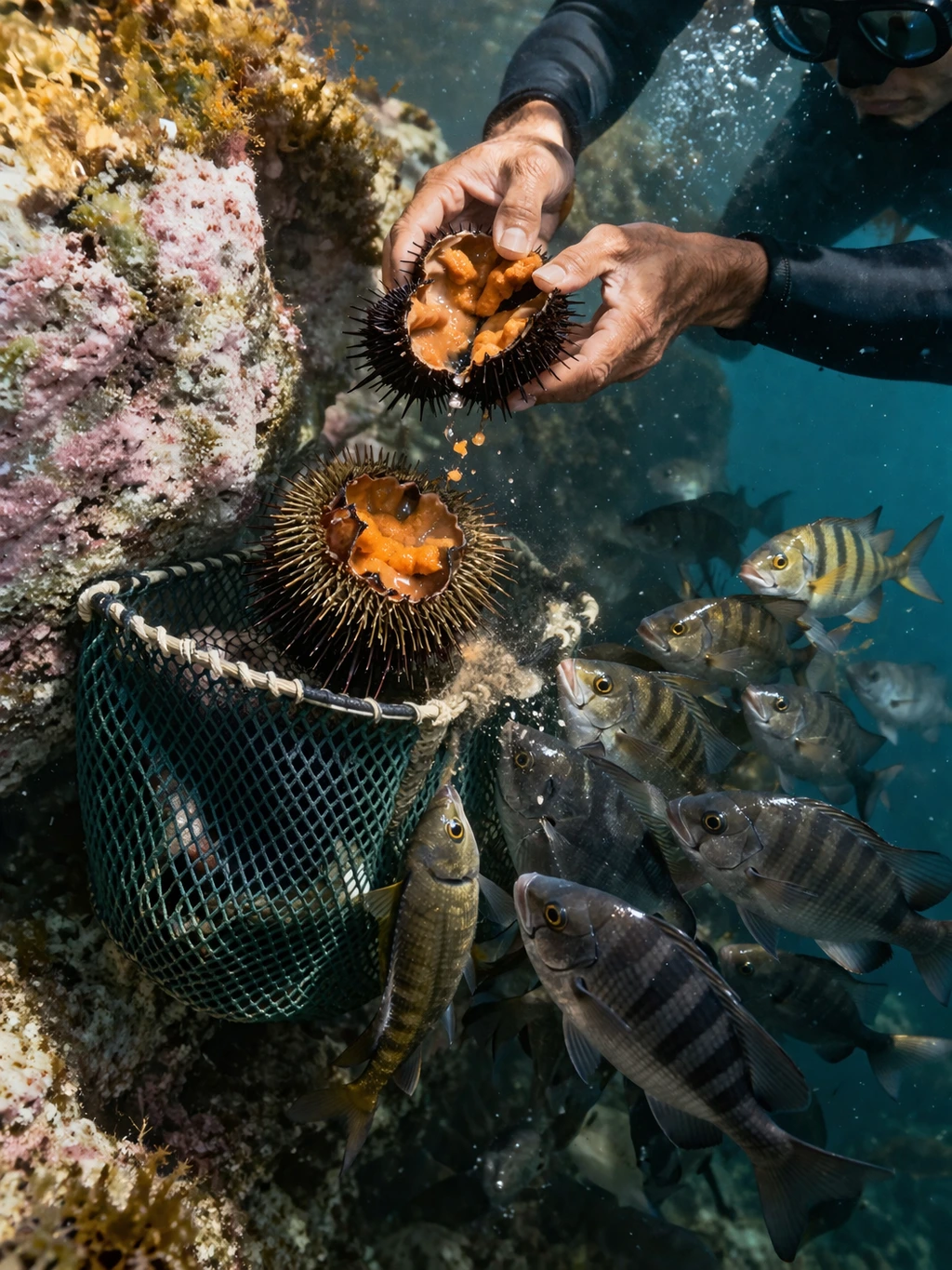 다음번에는 성게가 있는 곳으로 모여든다.