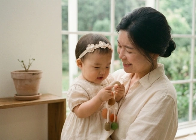 엄마가 웃는 순간을 잡는다.
