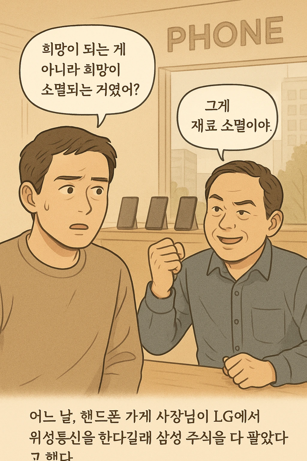 어느 날, 늘 마주치는 핸드폰 가게 사장님이 있었다.